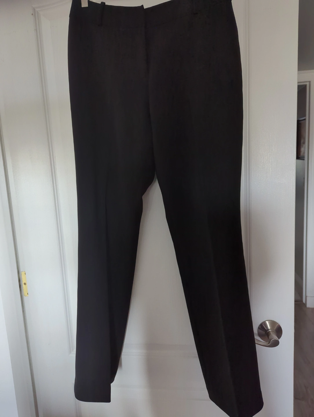 Women's black straight leg pants. Size 11. 98% polyester, 2% elastane. Some pilling on the back. Long length fits tall or with high heels
