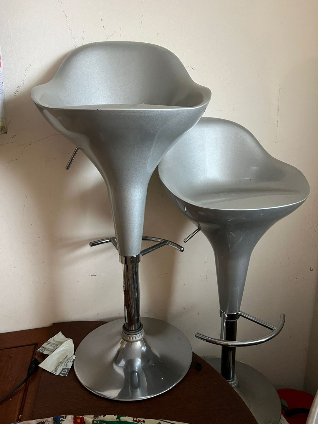 1 / 11 / 1Buy & SellPair of Modern Silver Bar StoolsPair of Modern Silver Bar Stools$80Two silver bar stools. Sleek, contemporary design. Adjustable height. Metal base and footrest. Plastic seat.ConditionGoodWHERE TO MEETL4X 1V7View MapSELLERverifiedavelinaDixie1988 reviews2 chats·0 favorites·54 viewsSEND CHAT TO SELLERHi avelina! I’m interested in your listing.Hi avelina! I’m interested in your listing.Get the Karrot app to chatSign In to chat