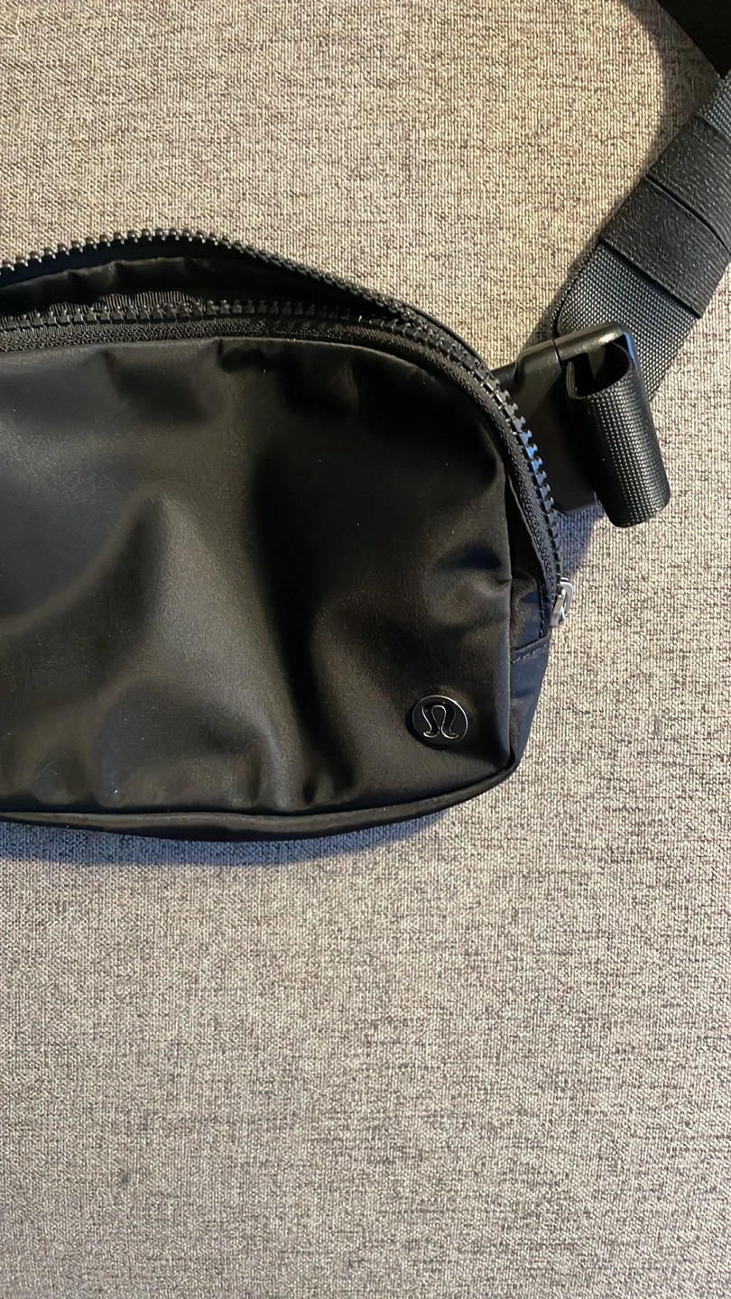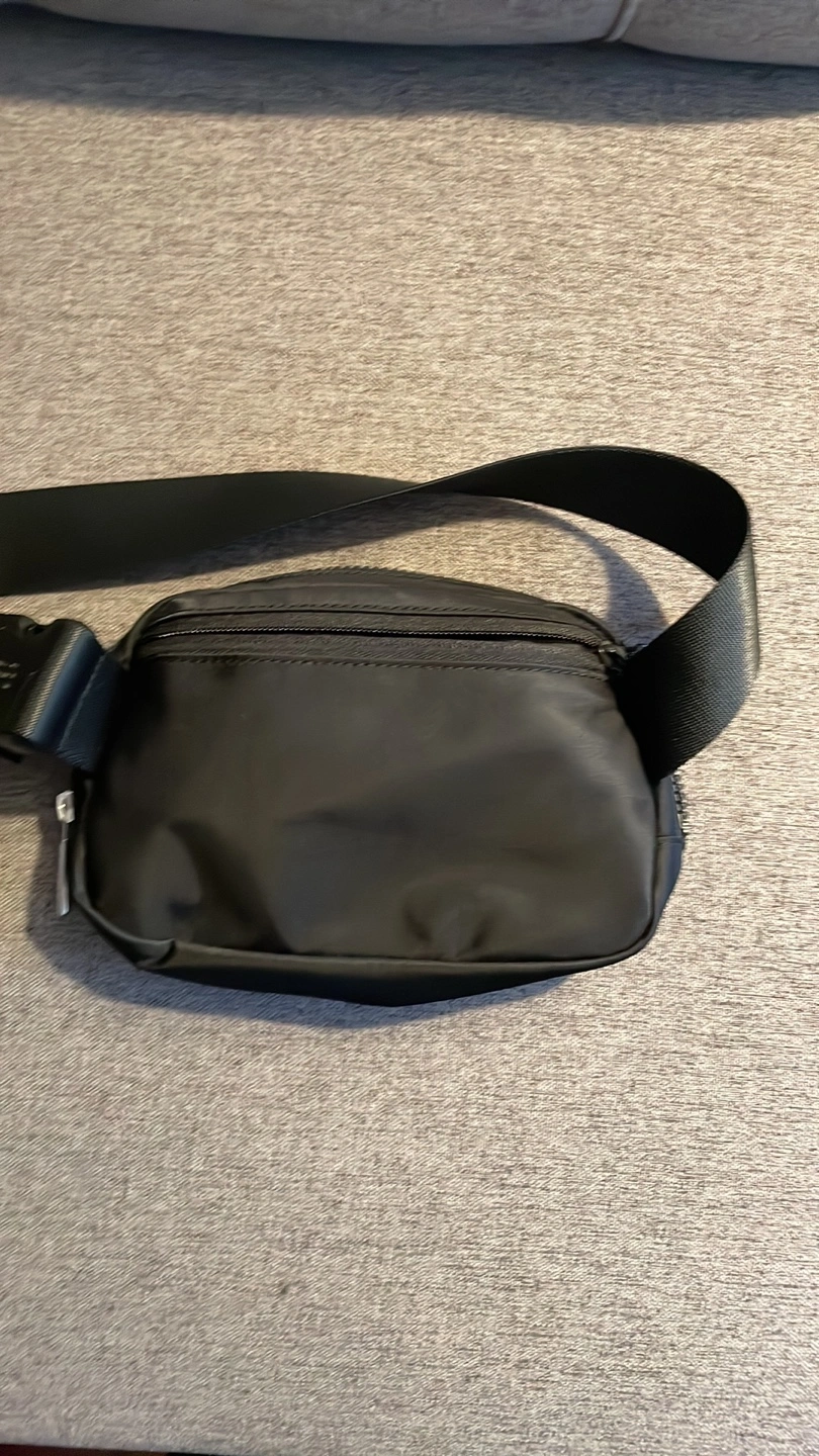 Small black crossbody bag. Adjustable strap. Multiple compartments. Zipper closure. Perfect for everyday use.