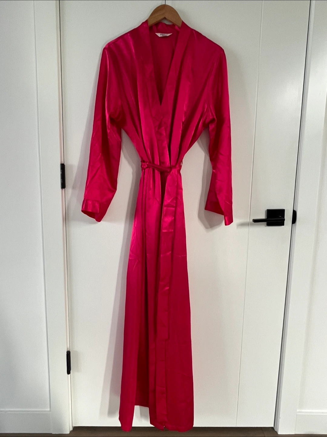 Beautiful pink satin robe (full length) Long sleeves, wrap style. Self-tie belt. Relaxing and comfortable. Never used so selling