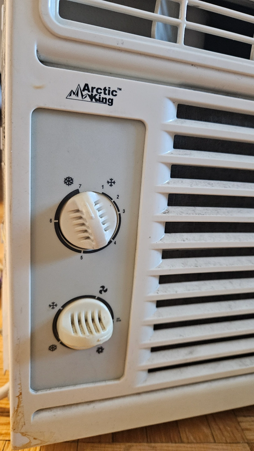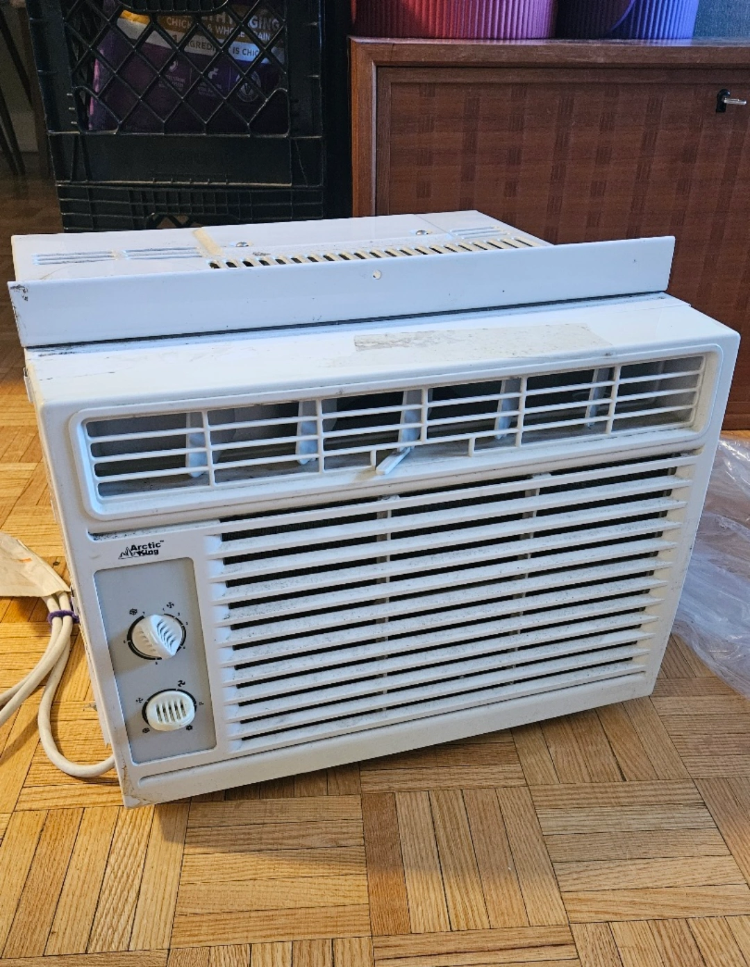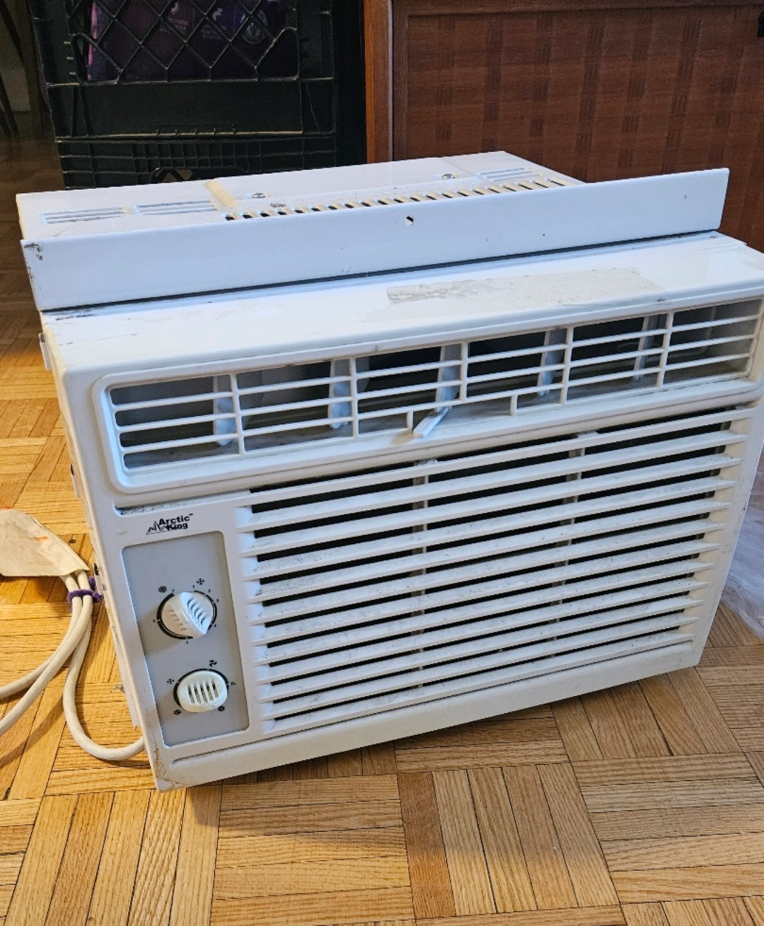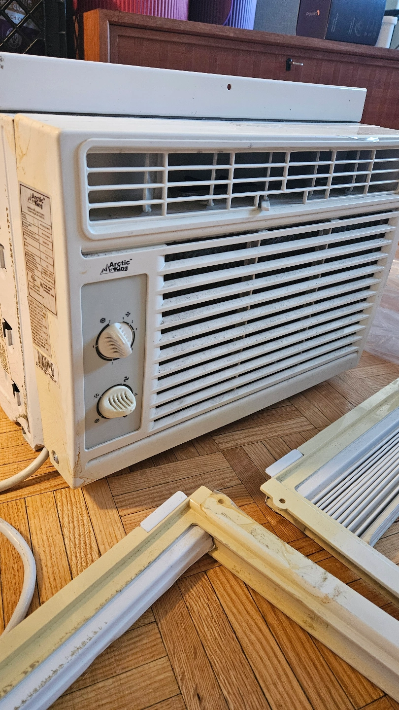 Used Arctic King window air conditioner. Includes window kit. Good working condition. Minor cosmetic wear.