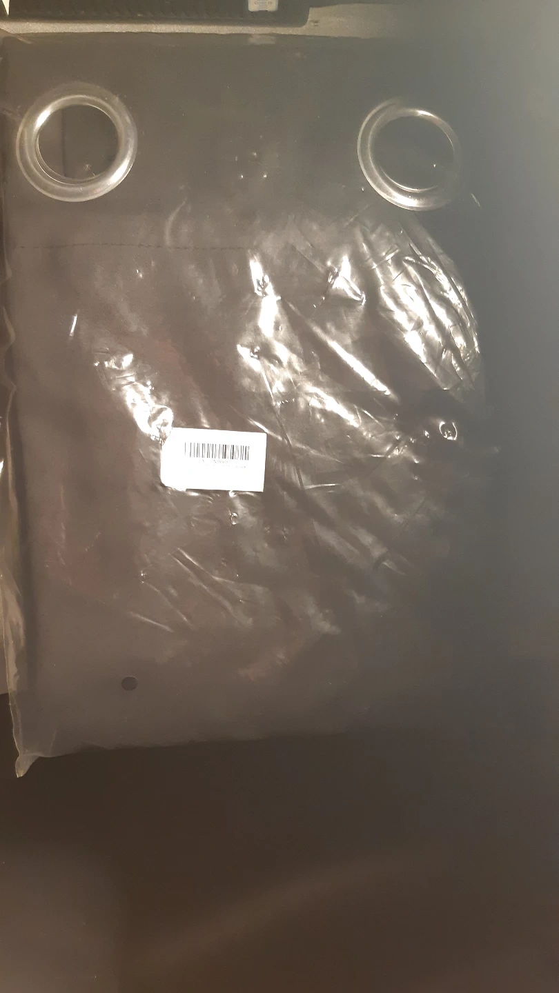 Brand new, black window curtain panel. 63 inches long. Grommet top. Packaged and ready to hang.