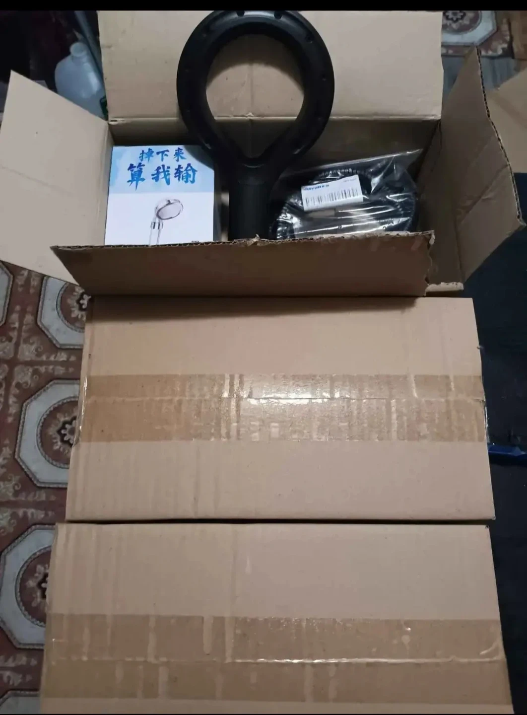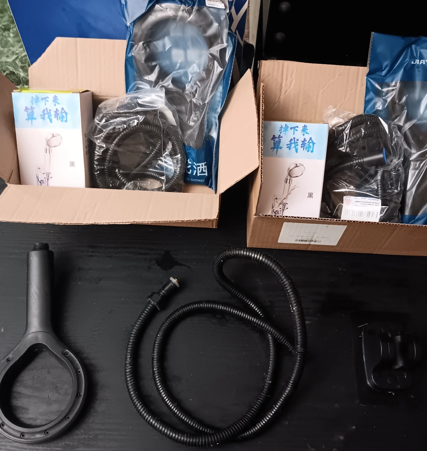Black shower headset . Includes long hose and mounting bracket. Easy installation. Great for small bathrooms or those with mobility issues. great water pressure performance