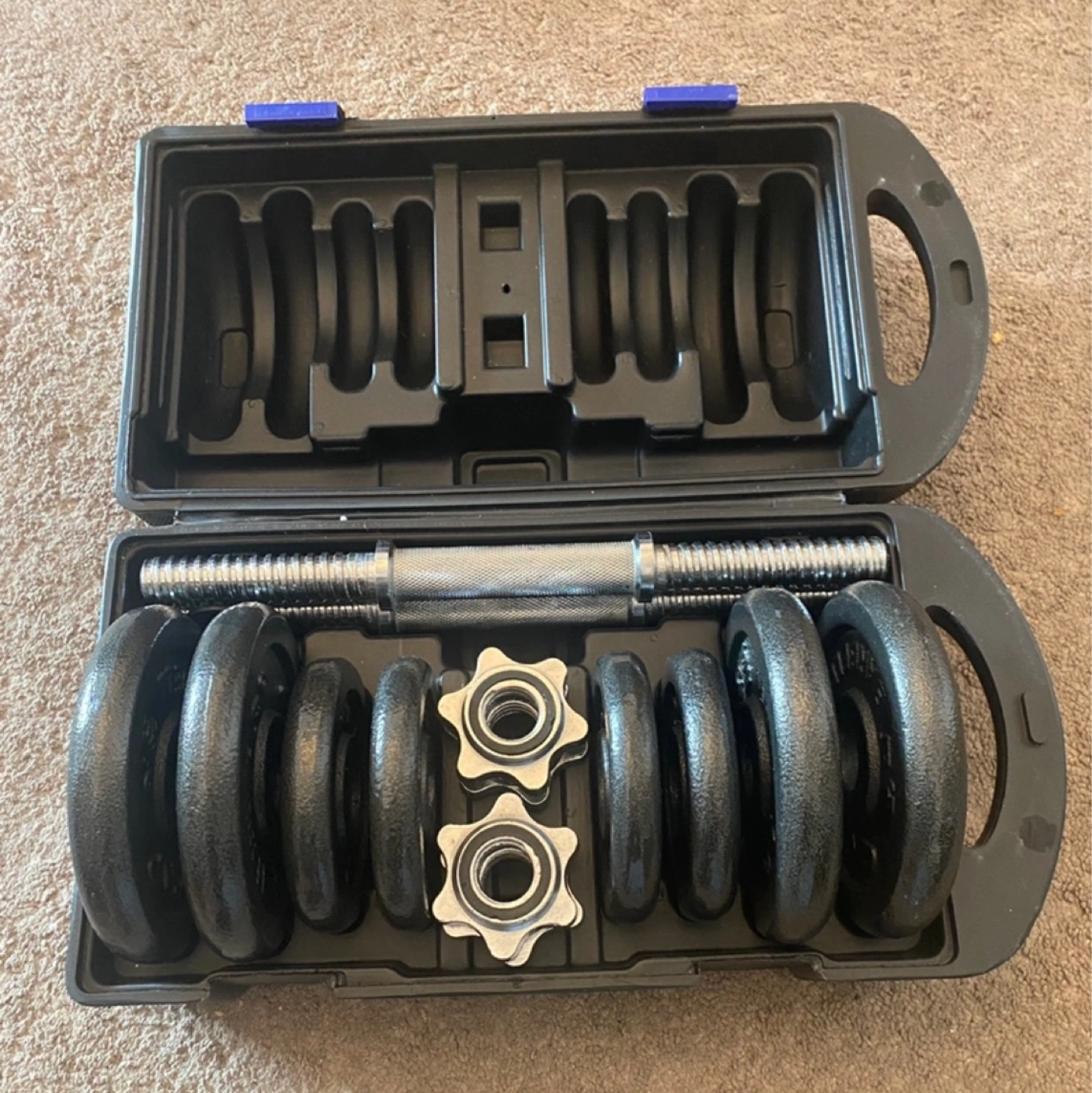 Complete dumbbell set. Convenient carrying case. Great for home workouts.