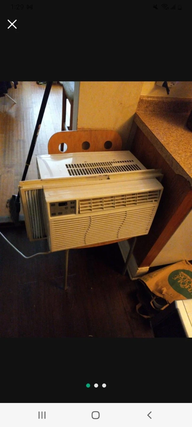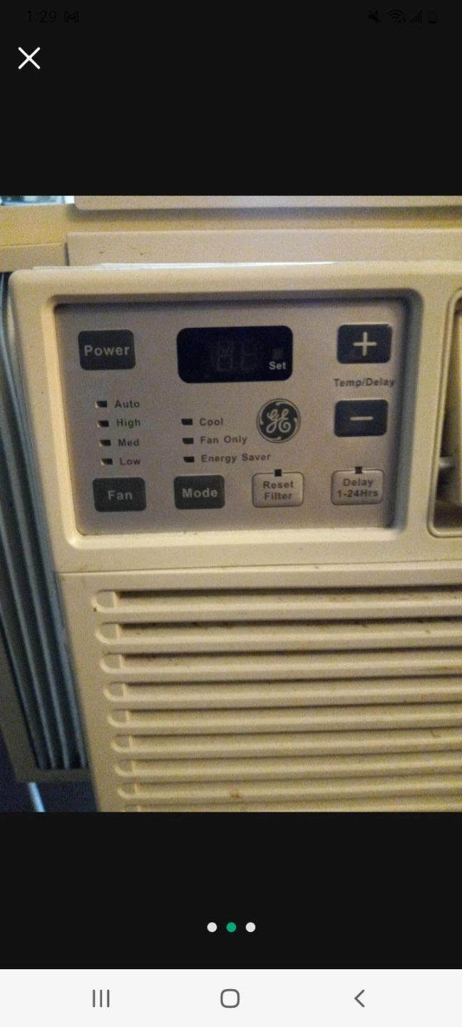 barely used GE window air conditioner. Features multiple fan speeds and cooling options. Includes a timer.