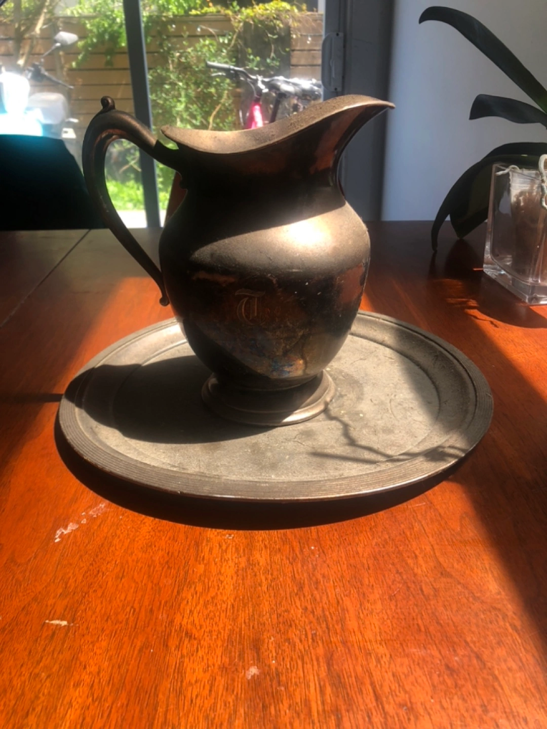 Buy & SellVintage Rogers Bros Silver and Copper Pitcher and TrayVintage Rogers Bros Silver and Copper Pitcher and Tray$50Antique silver plated solid copper pitcher and matching tray. Beautiful patina. Excellent for display or serving. Shows some signs of age and wear.WHERE TO MEETCheck LocationView MapSELLERverifiedOscarLittle Italy18010 reviews0 chats·0 favorites·14 viewsSEND CHAT TO SELLERHi Oscar! I’m interested in your listing.Hi Oscar! I’m interested in your listing.Get the Karrot app to chatSign In to chat