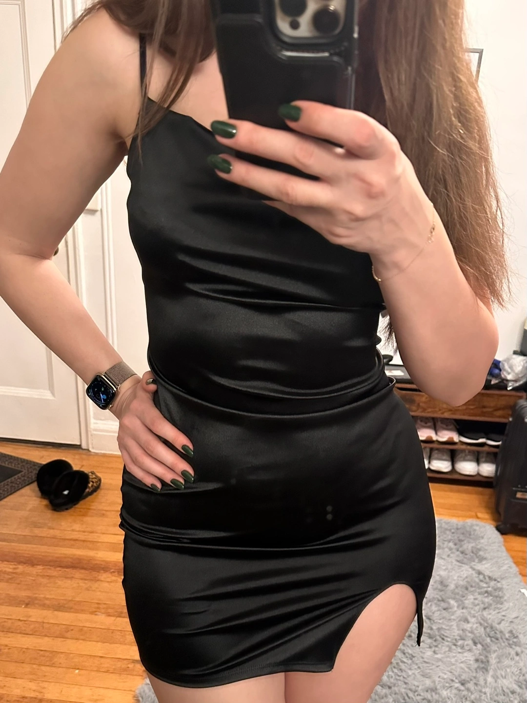 Black Satin Mini Slip Dress