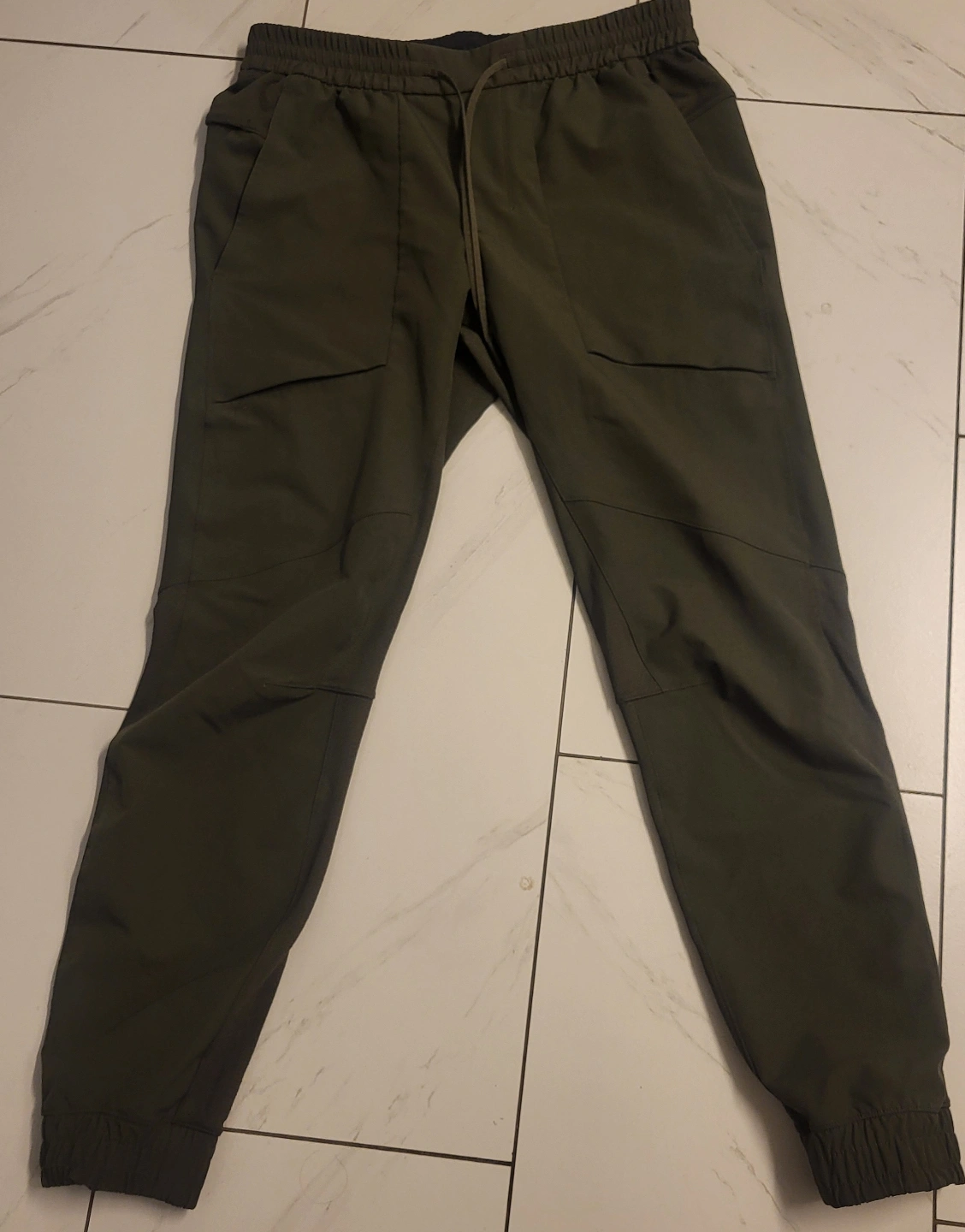 Lululemon ABC joggers. Dark olive green colour. Elastic waistband with drawstring. Pockets. Great for workouts or casual wear.