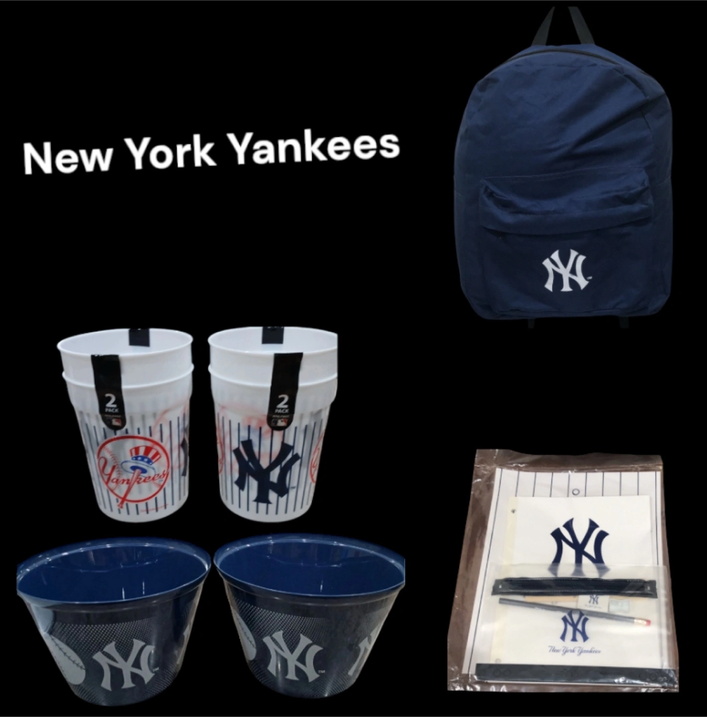 New York Yankees themed stadium cups, snack bowls, and backpack. Perfect for game day! Cups are 2-packs. Includes supplies set. Please see the photos carefully Sell or Trade