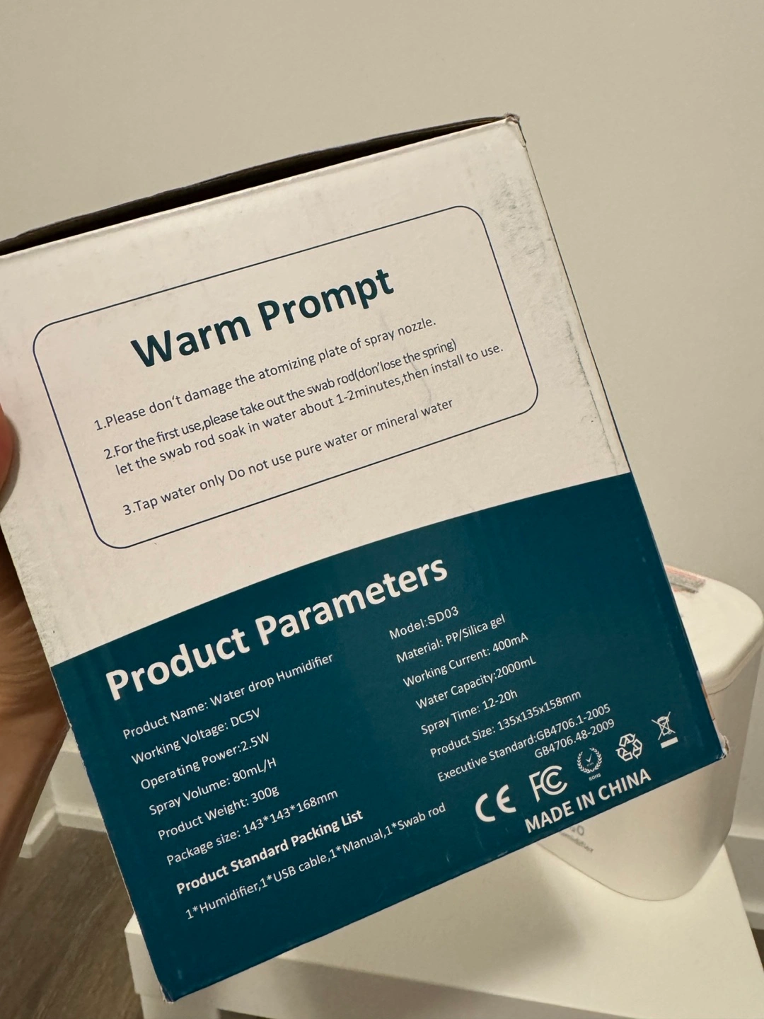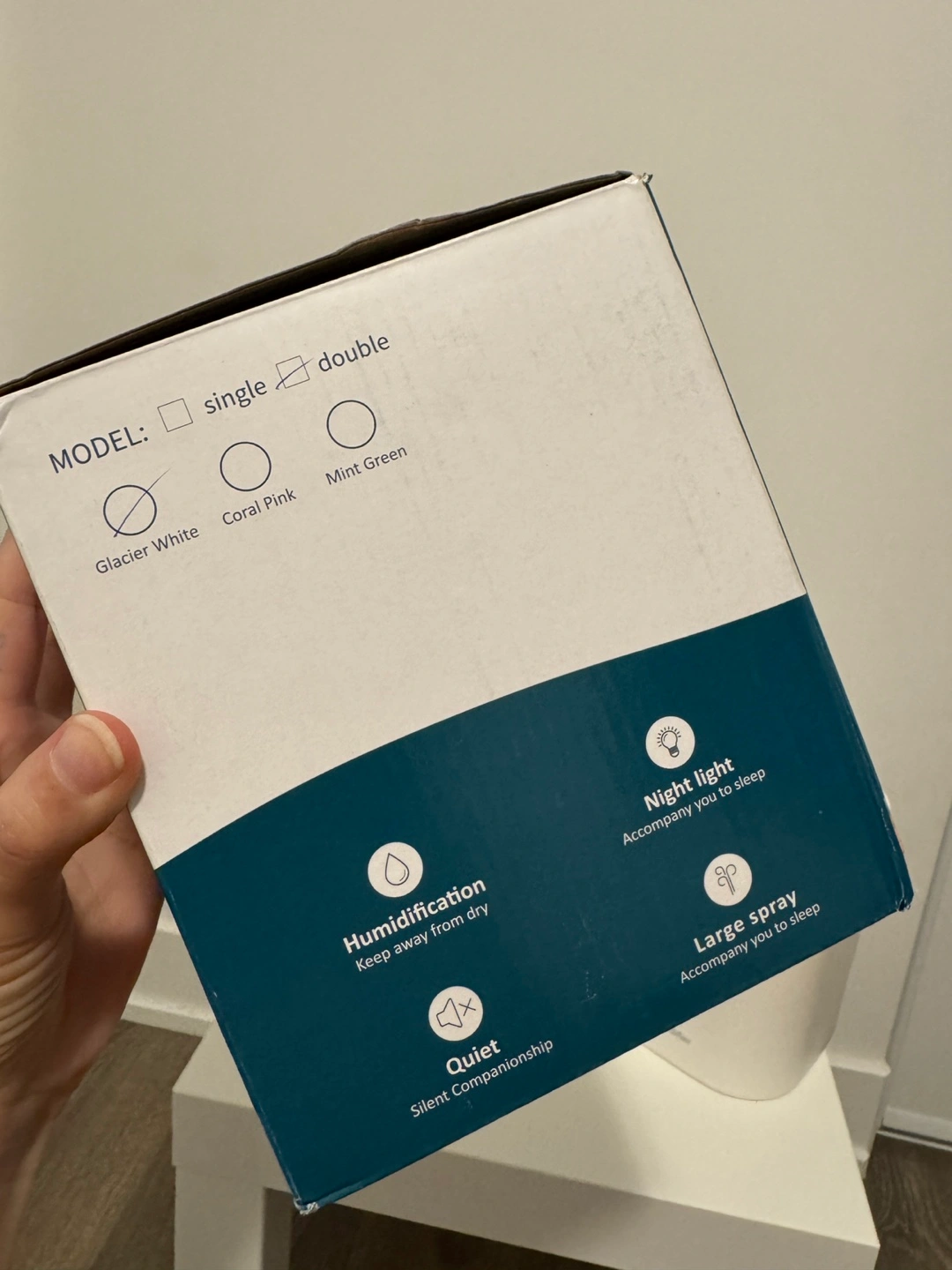 Portable humidifier. Compact design. Night light. Quiet operation. USB powered. Multiple colours available.