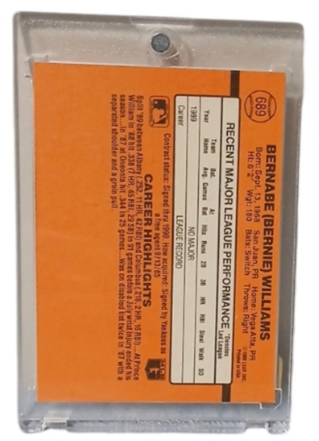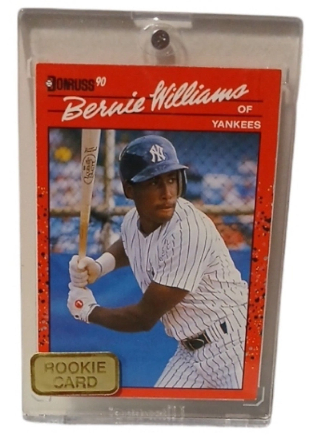 Bernie Williams rookie card. Donruss 1990. In a hard plastic card holder. New York Yankees.