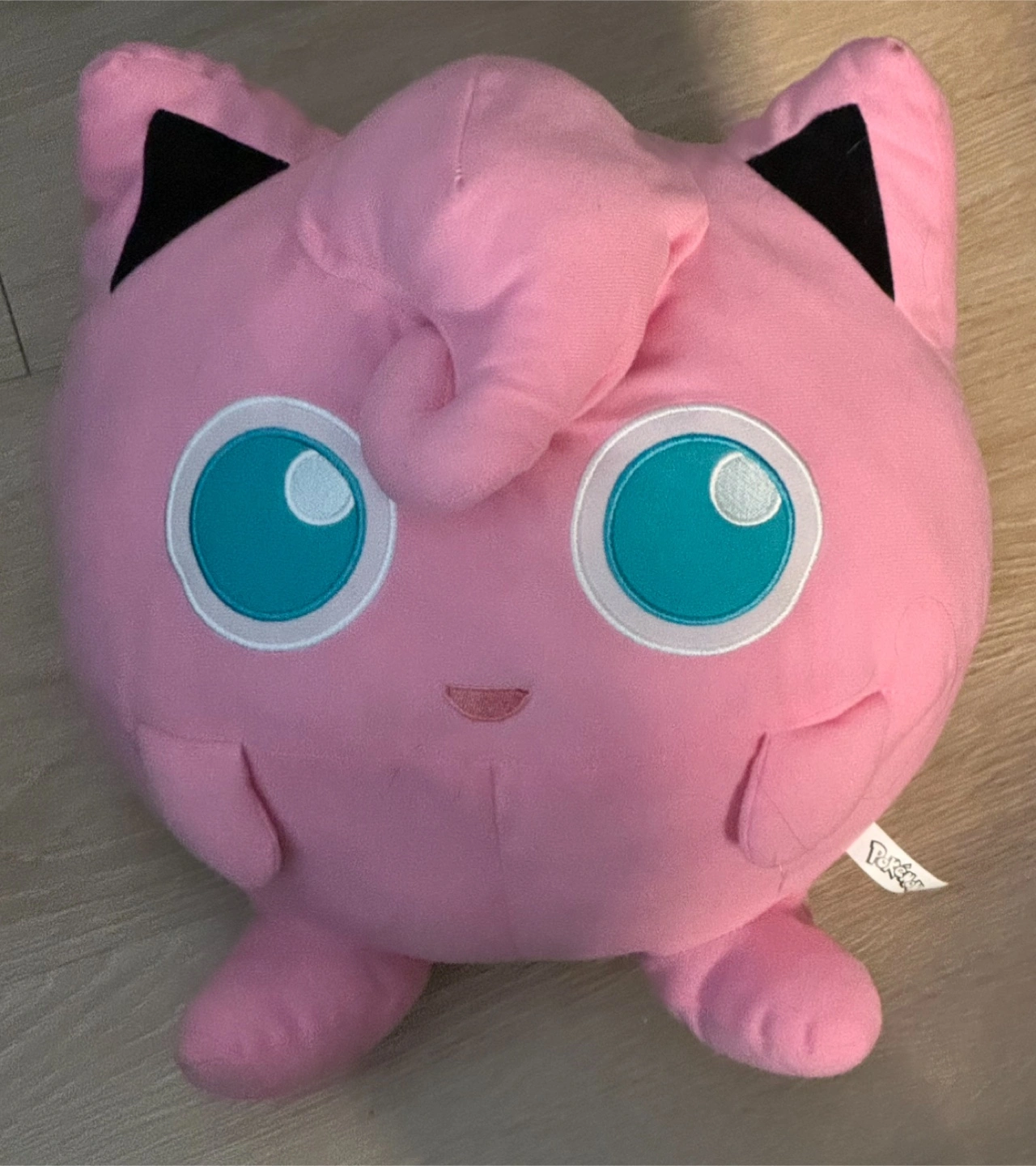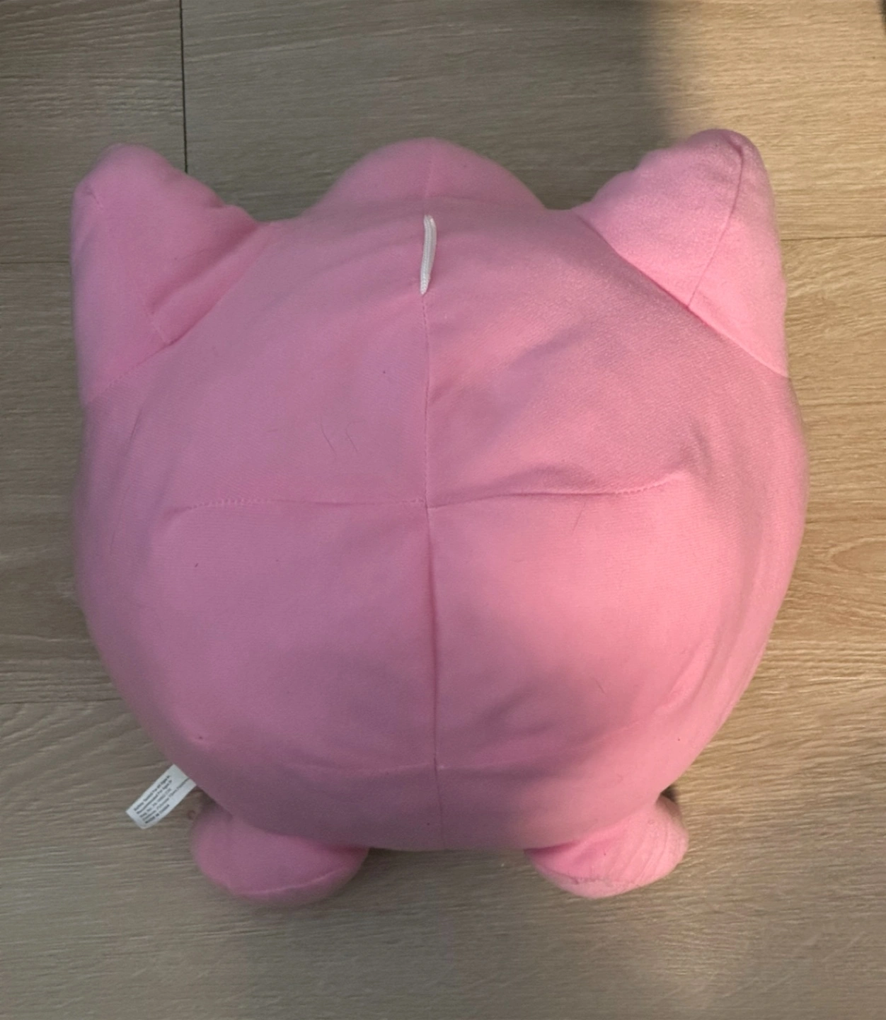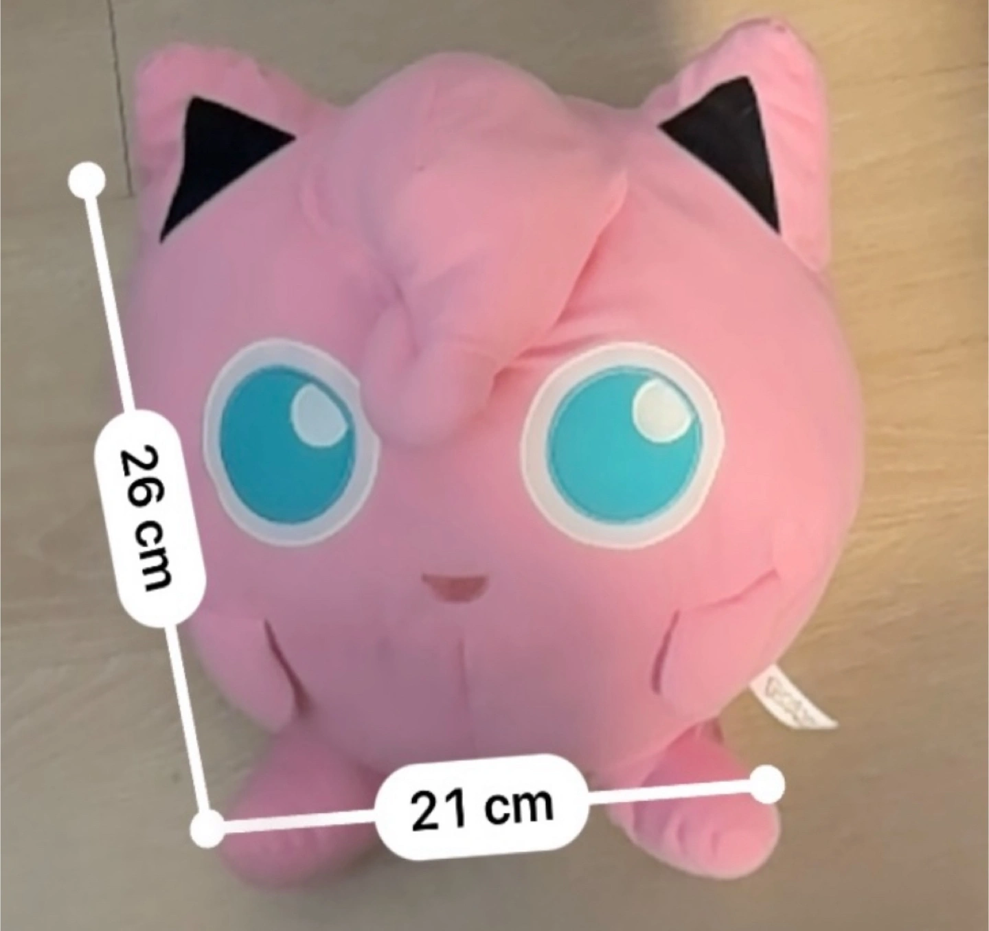 Authentic jigglypuff Pokemon plush! Super cute, great condition, just been on display and unfortunately don’t have space for it anymore. Has a bit of weight to it and soft. Good for decoration and you can even hang it up with the white hook on the back! Measures approx 26x21cm/10in tall (medium sized).