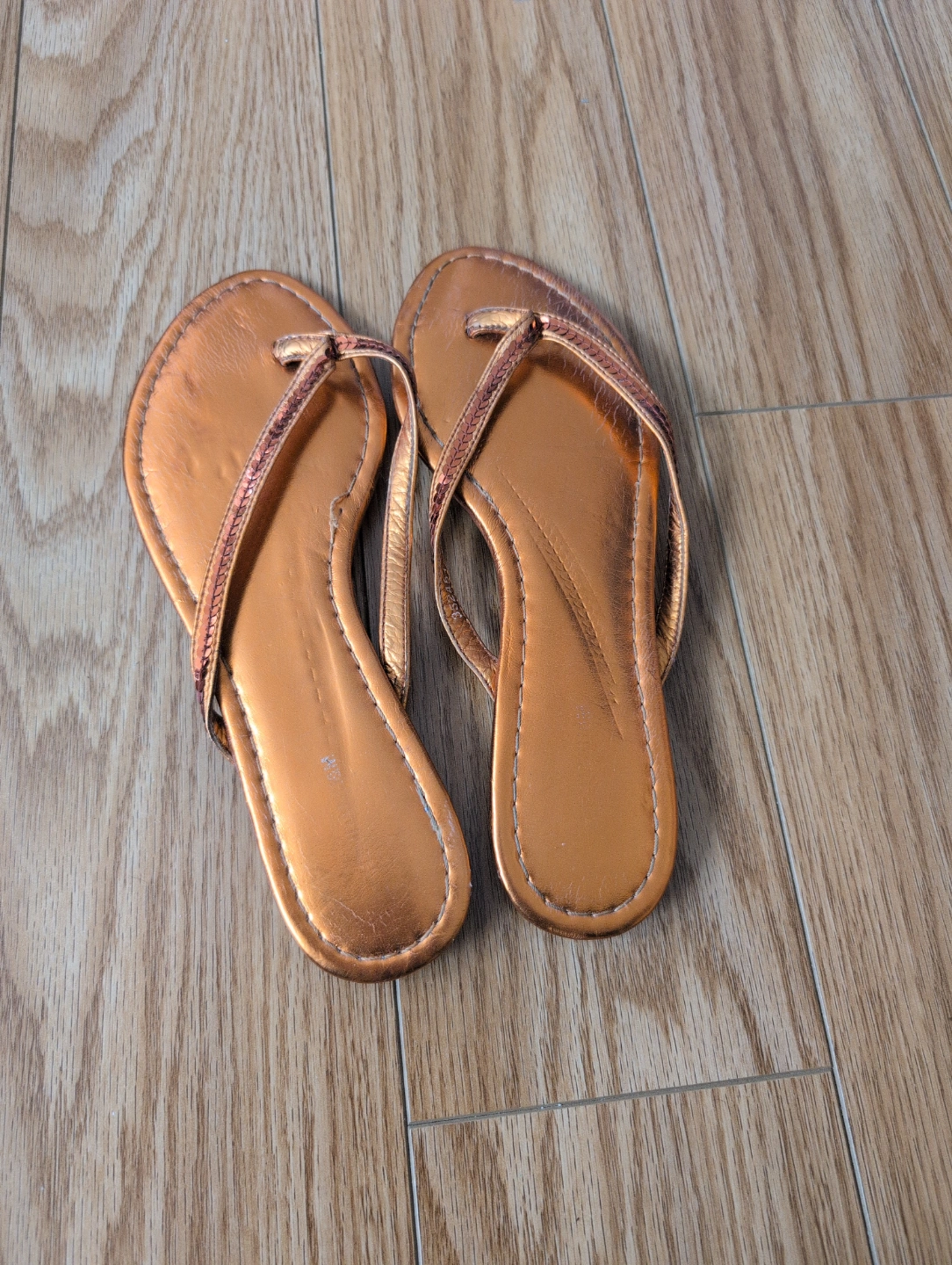 ๐ Shiny Burnt orange sequined flip flops - Size 38/39