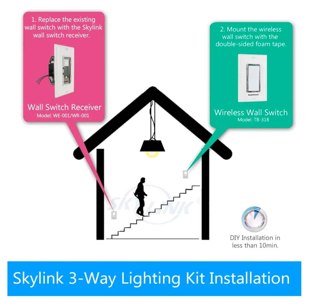 π SkyLink Wireless Remote lightswitch π‘3-Way On/Off Dimmer Kit