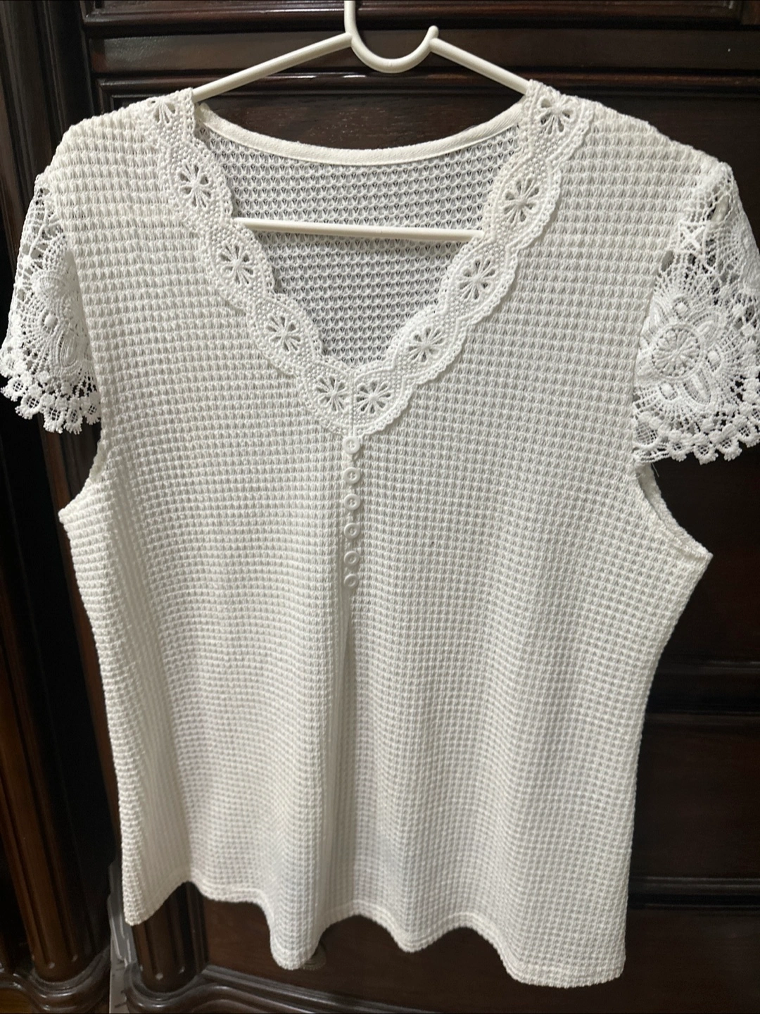 White Crochet Lace Short Sleeve Blouse Size L π₯