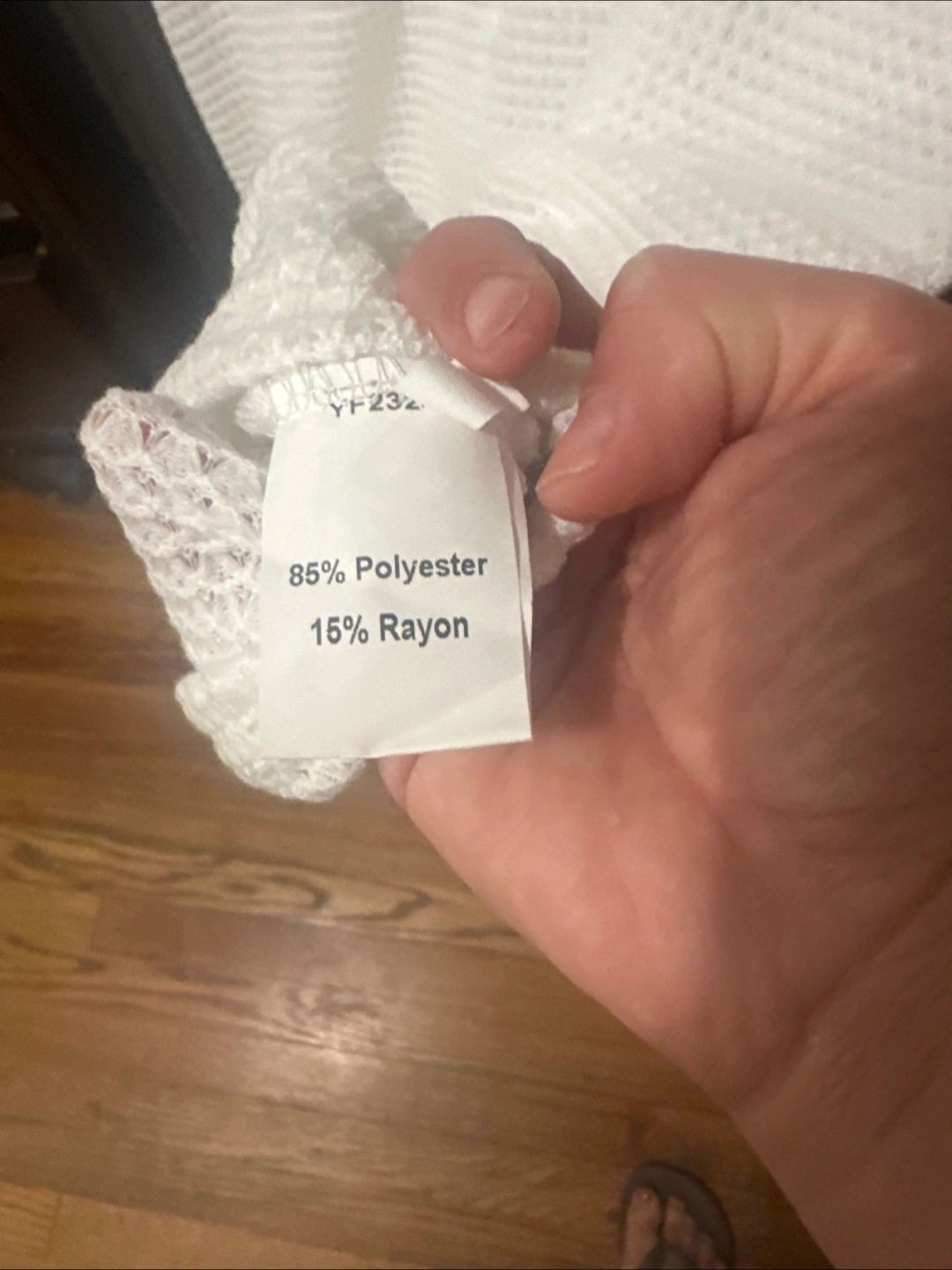 Women's white crochet top. Short sleeves. Lace detailing at neckline and sleeves.