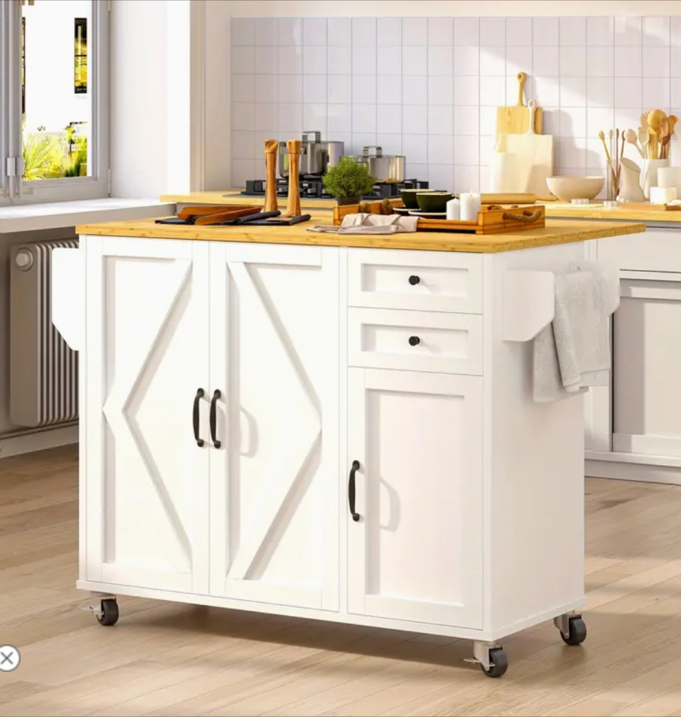 White Kitchen Island Cart with Wood Top (NEW)