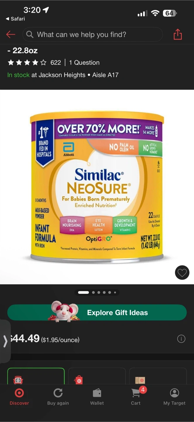 Three unopened cans of Similac Neosure infant formula for babies born prematurely. Enriched nutrition. 22 oz cans.