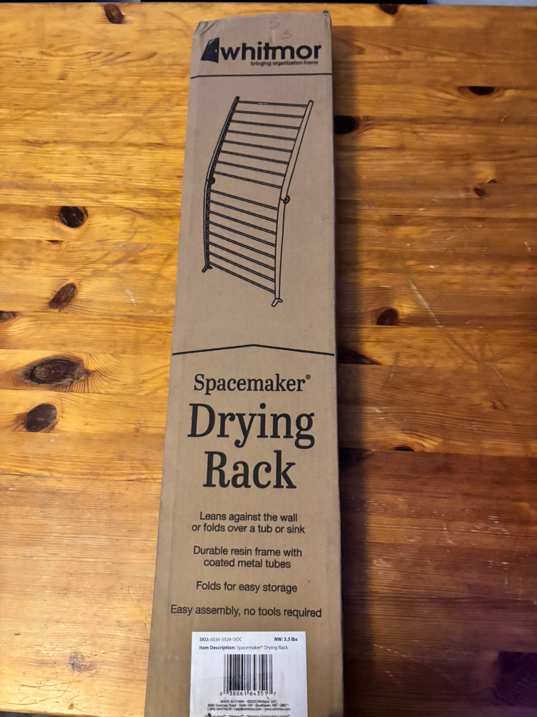 New in box. Space saving design. Folds for easy storage. Durable resin frame with coated metal tubes. Easy assembly, no tools required.