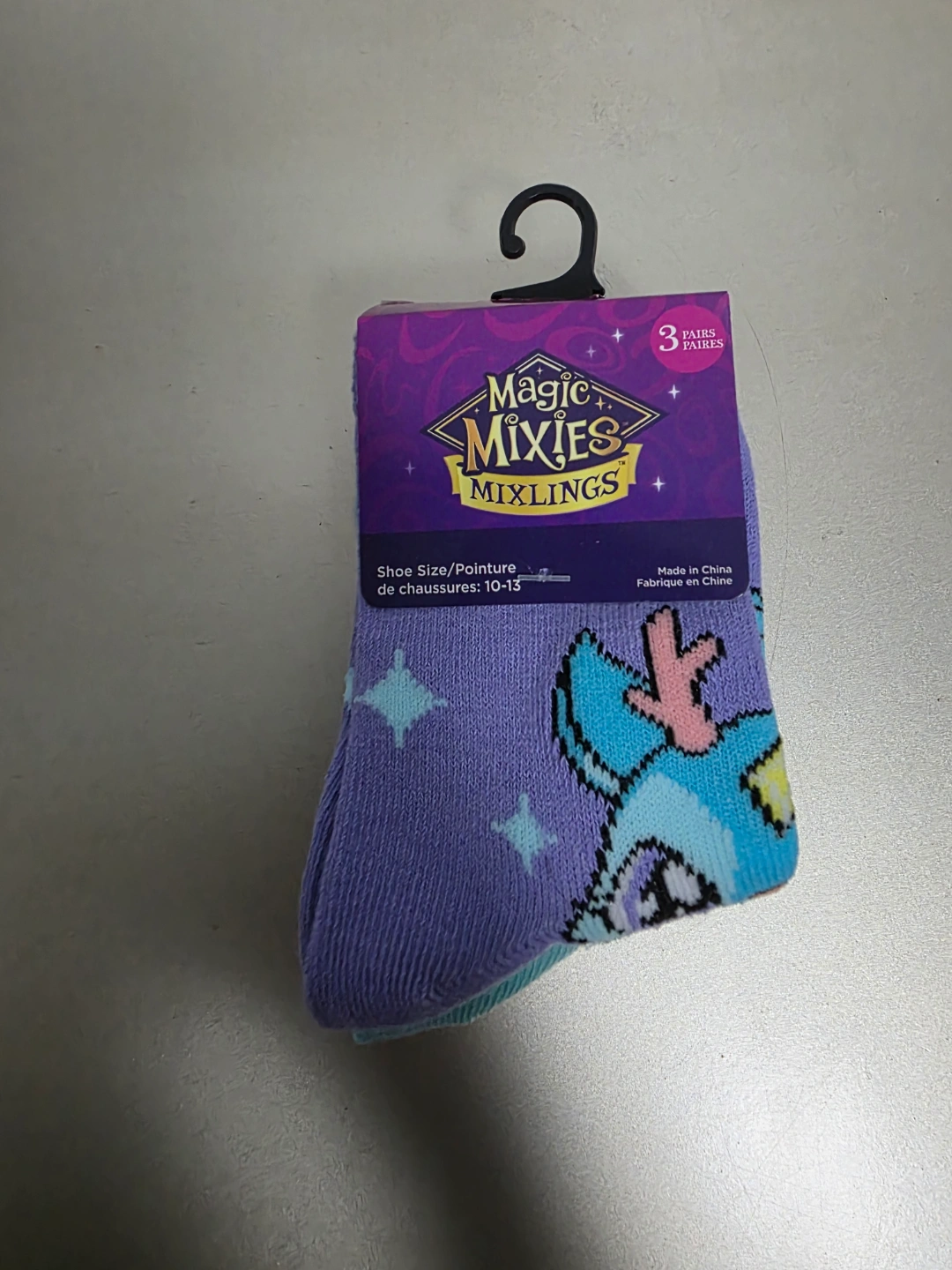 Three pairs of girls socks. Featuring Magic Mixies Mixlings characters. Size 10-13. New in package.