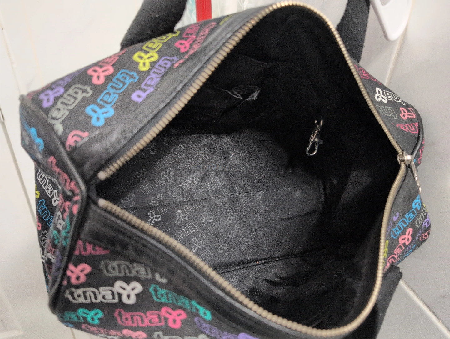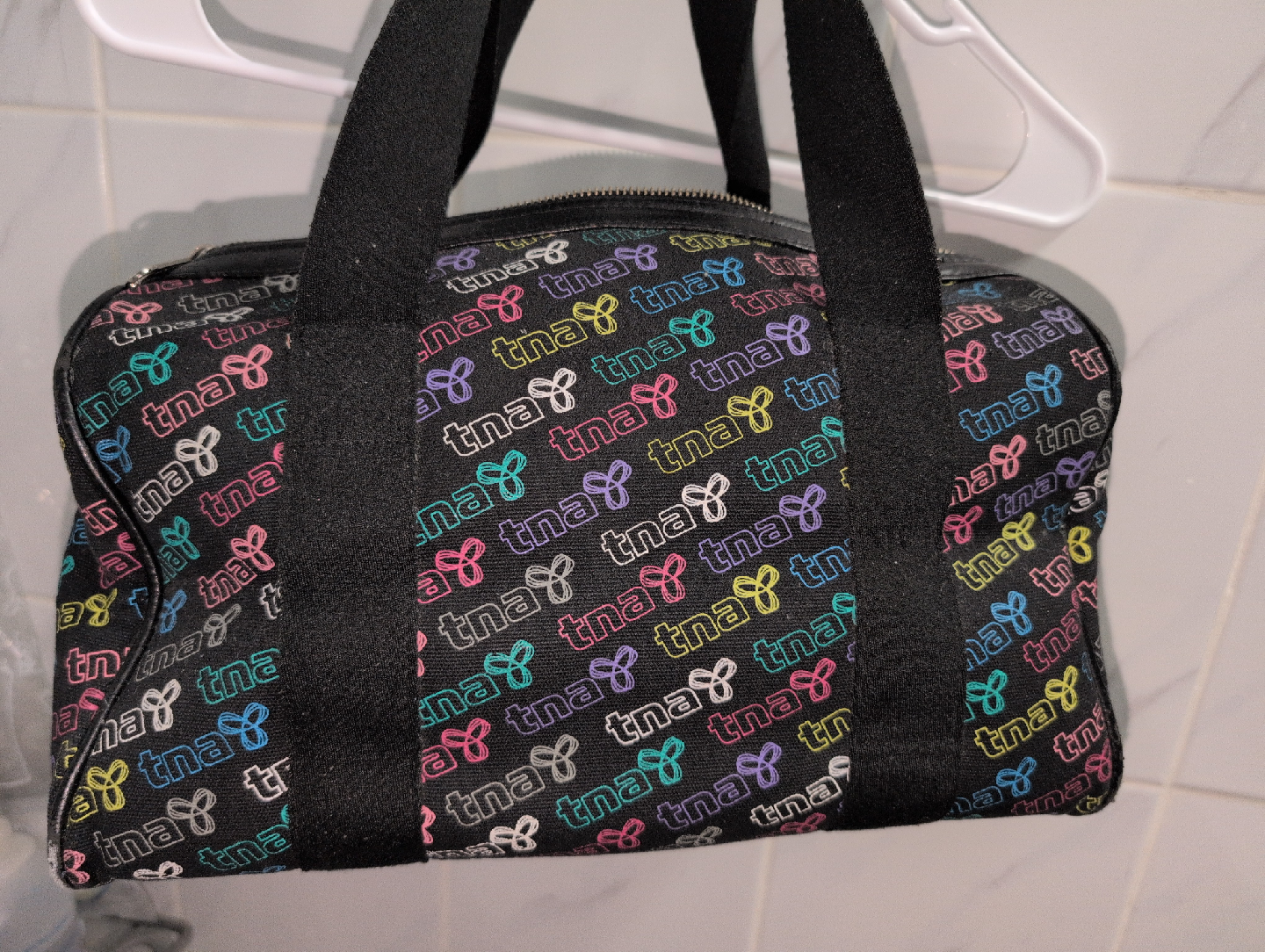TNA black and colourful logo print bag