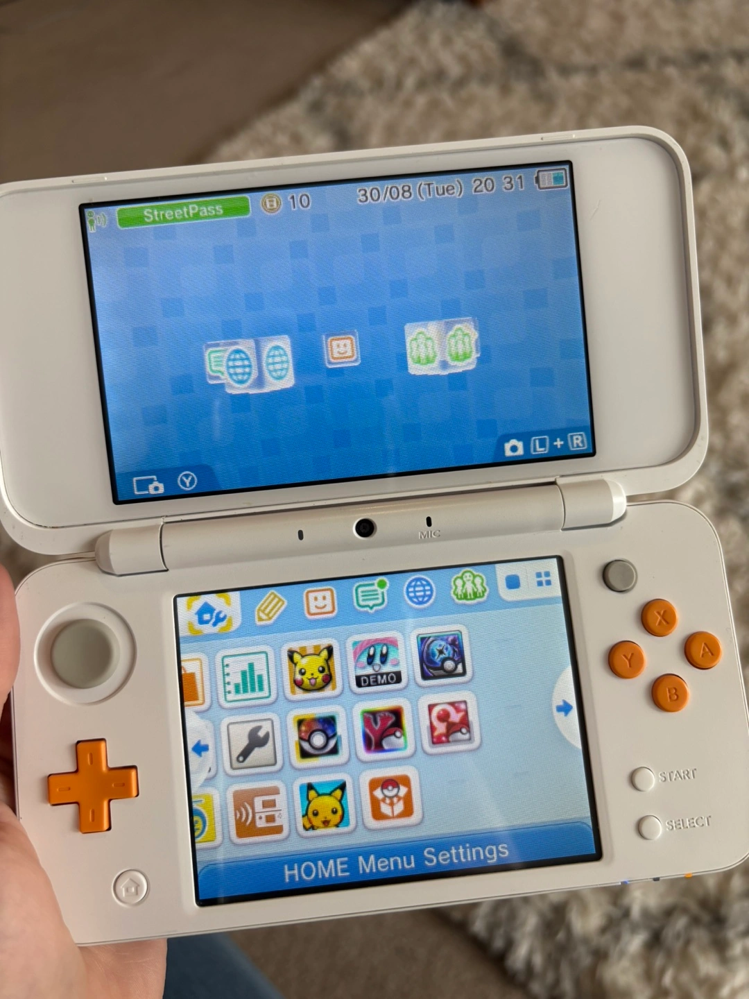 Comes pre installed with Pokemon Y, Pokemon ultra moon, Pokemon omega ruby and Pokemon bank!