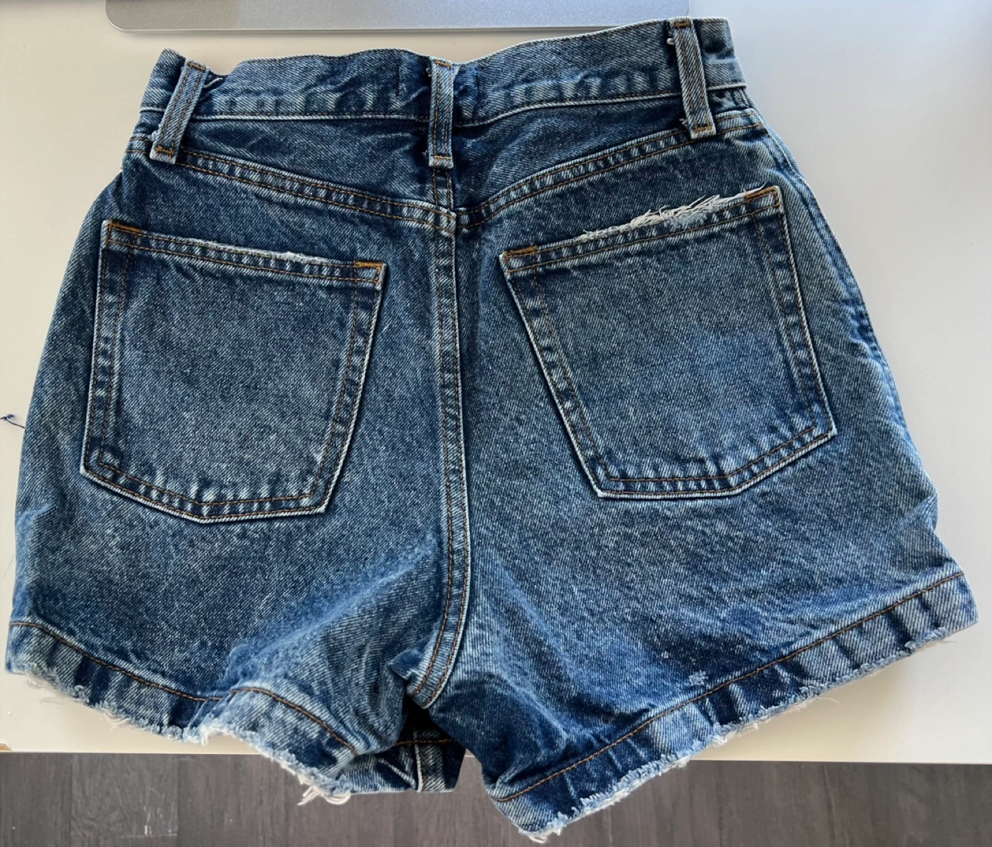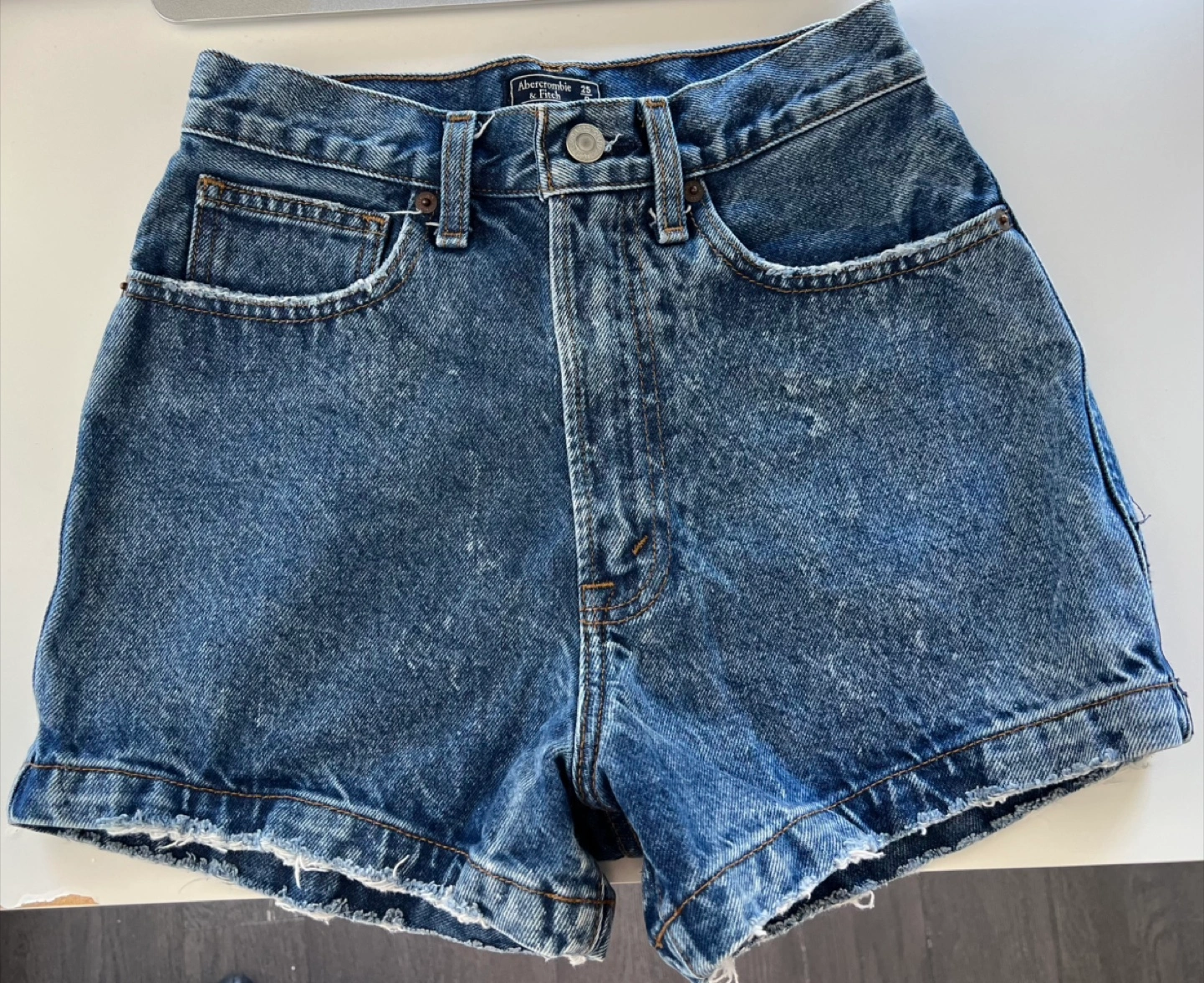 Abercrombie & Fitch denim shorts. Size 25. High rise. Light wash. Distressed hem. Great condition.