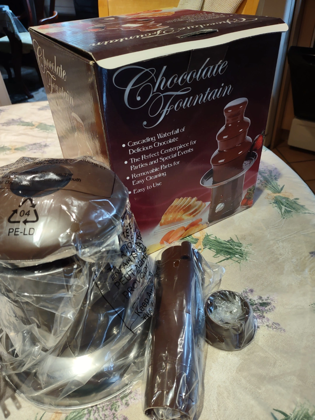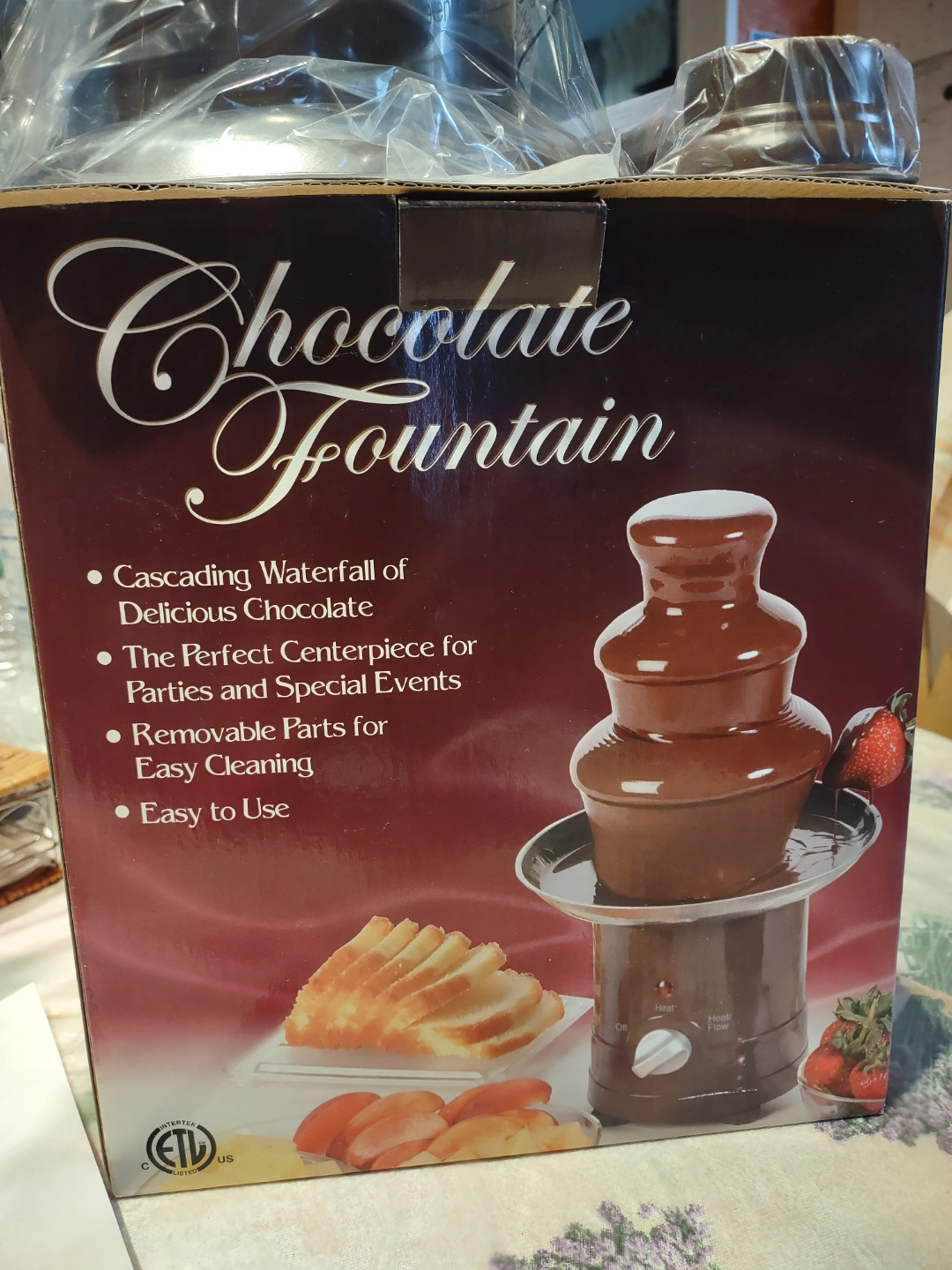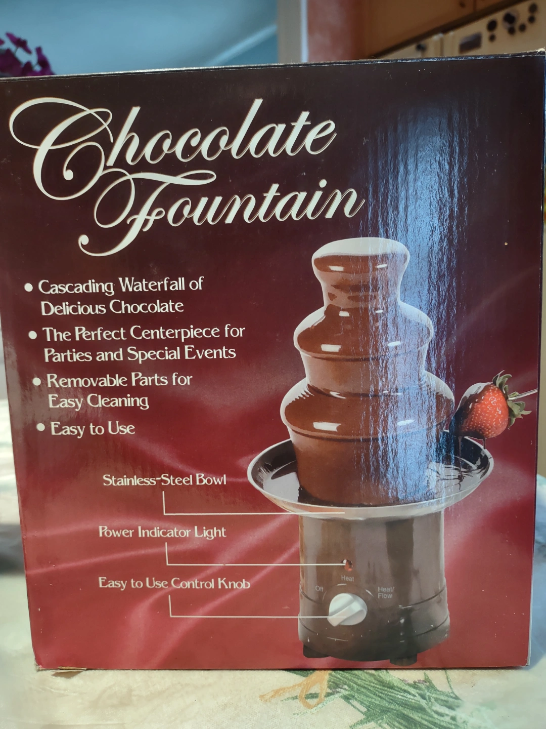 Melted Chocolate Fountain device with stainless steel bowl, has heat control knob and light indicator.