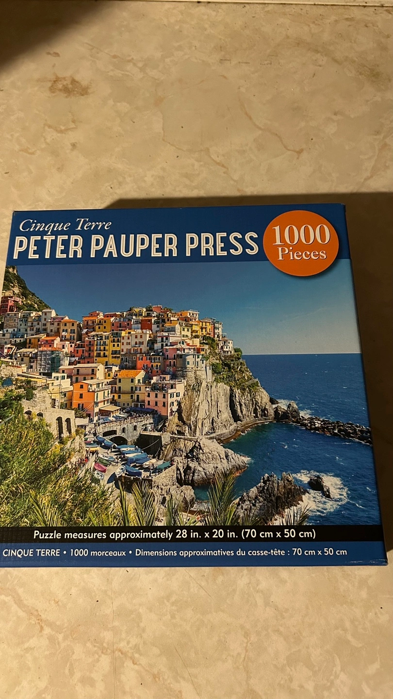 1000-piece jigsaw puzzle. Beautiful image of Cinque Terre, from northwestern Italy. Measures approximately 28 x 20 inches (70 x 50 cm). Complete puzzle with photo attached for proof (no missing pieces)