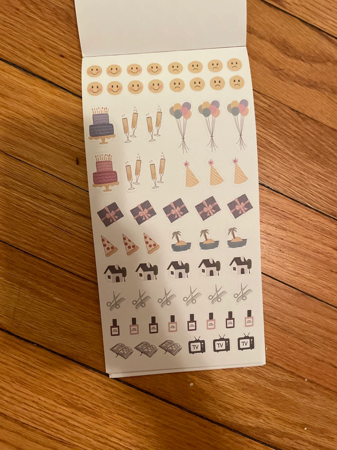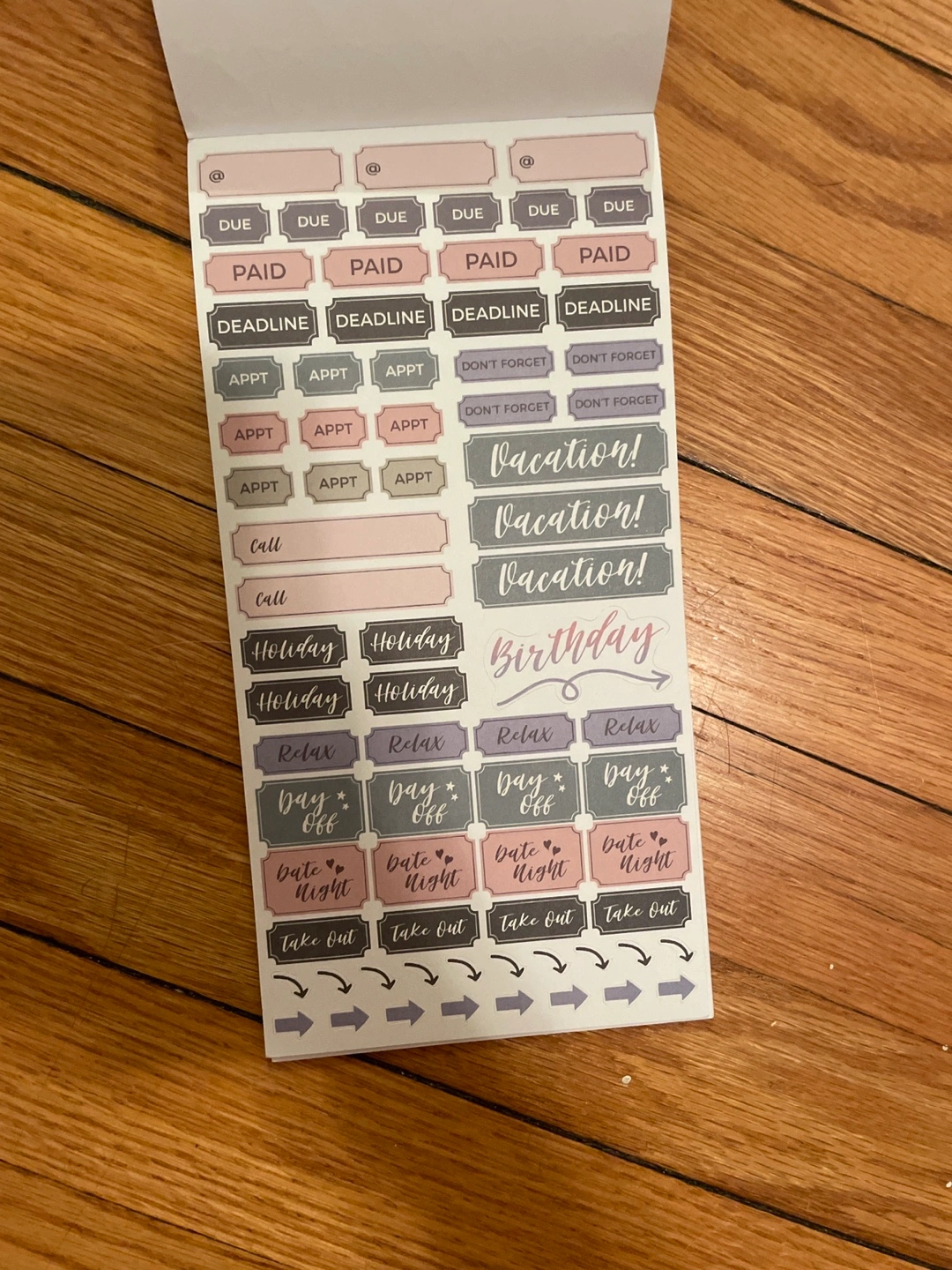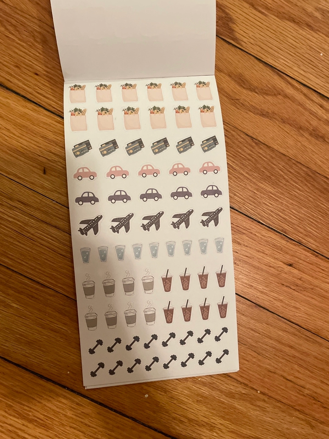variety of stickers, barely used. I’ve used up about a half sheet of stickers