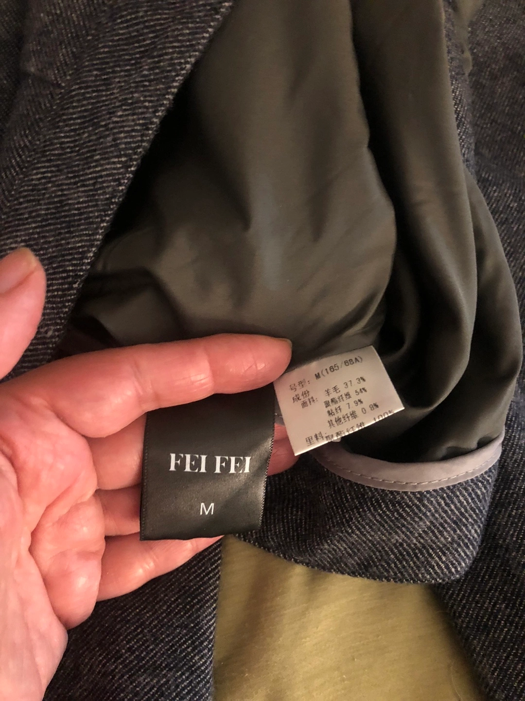 Bundle of five women's pants. Includes one pair of dark grey Glen pants, size 828; one pair of dark grey Fei Fei pants, size M; and one pair of patterned pants. Various styles and fabrics.