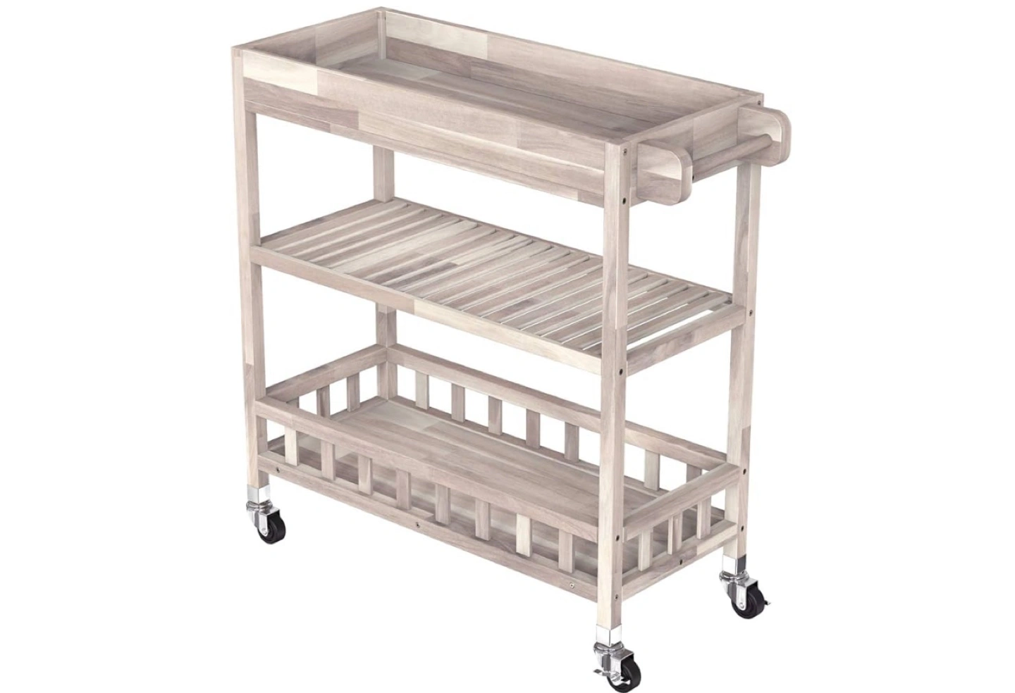 Three-Tier Wooden Kitchen Trolley with Wheels
