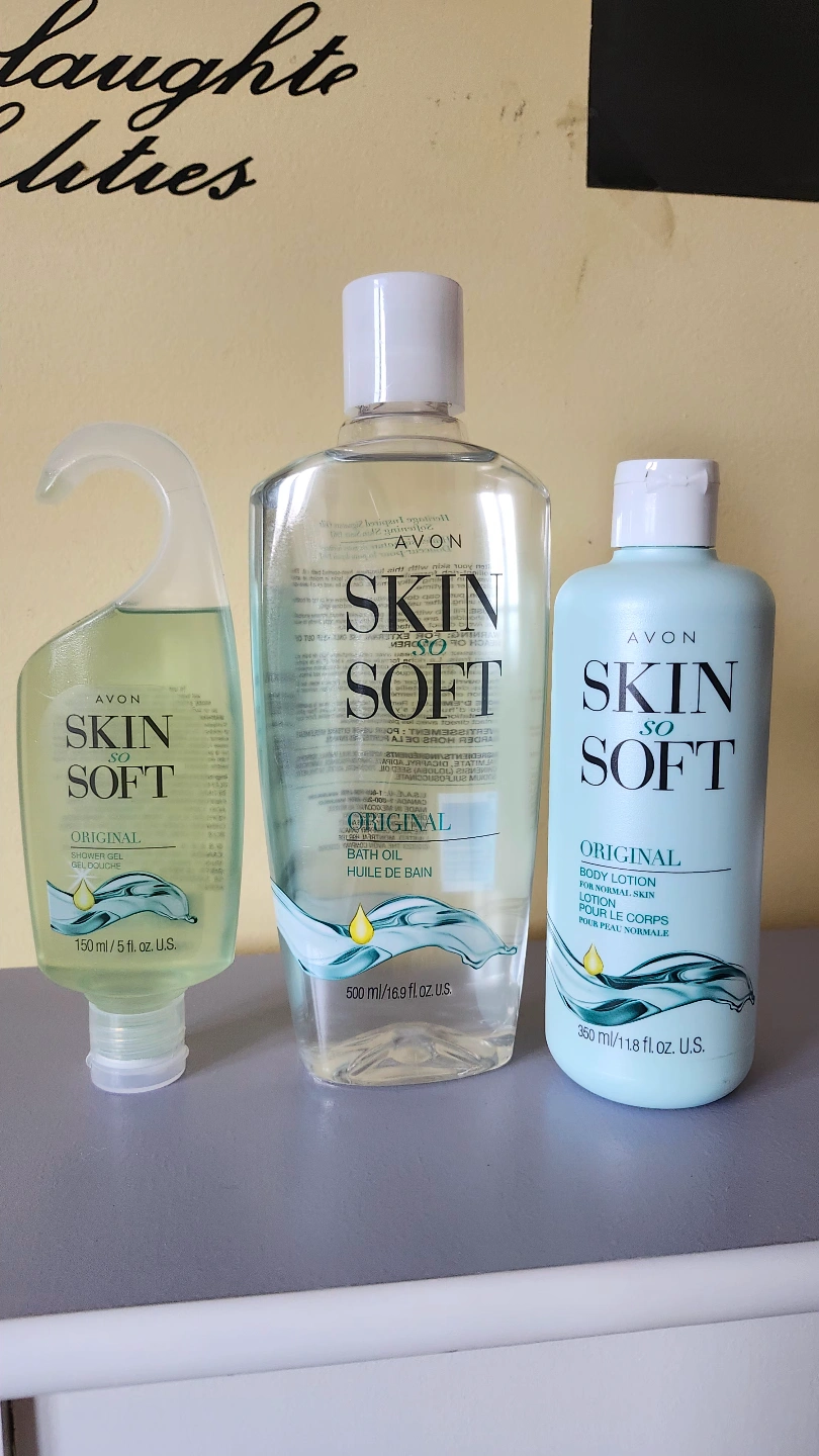 This set includes an original Skin So Soft body lotion, bath oil, and showAll brand new unopened products