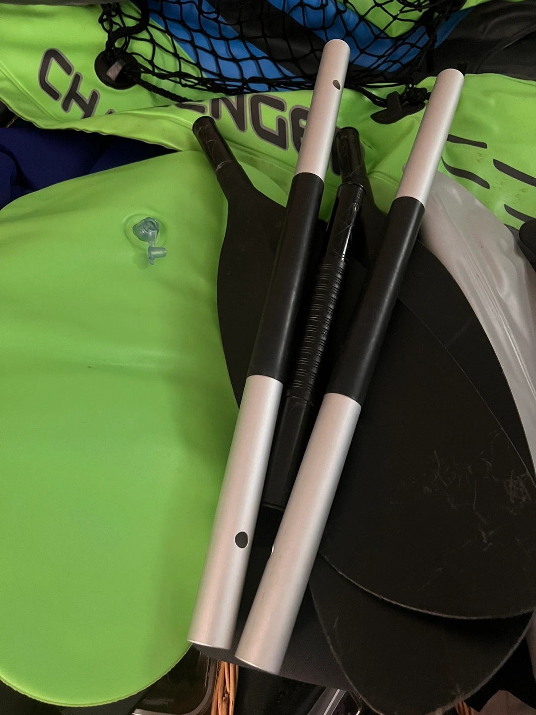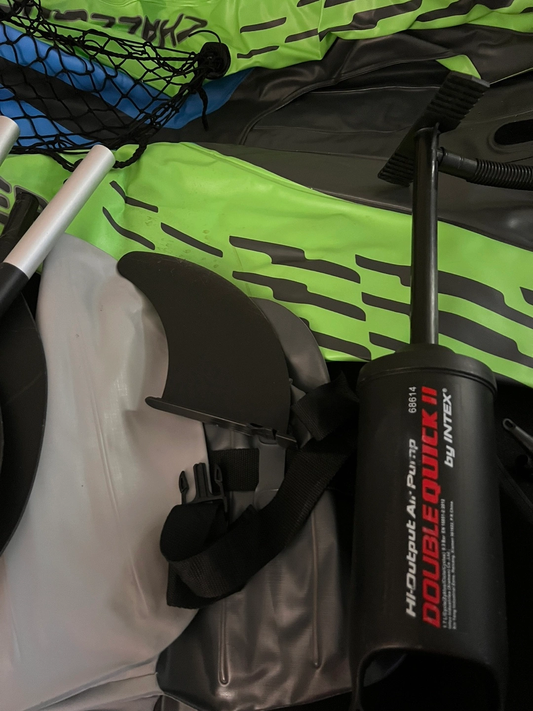 In very good condition, with no leaks and no box. Inflatable single-person kayak. Includes high-output pump, paddle, and removable skeg. Features comfortable cockpit and cargo net. Great for recreational use. Can meet at Starbucks Burquitlam and the price is $50 cash.