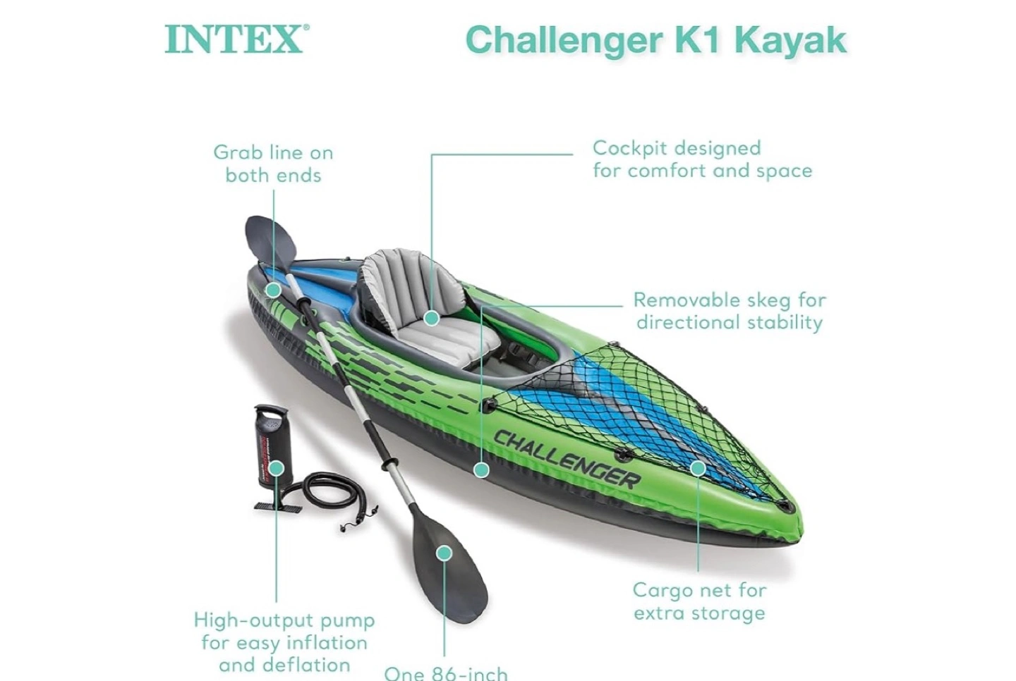 INTEX Challenger K1 Kayak - Inflatable Kayak with Paddle & Pump