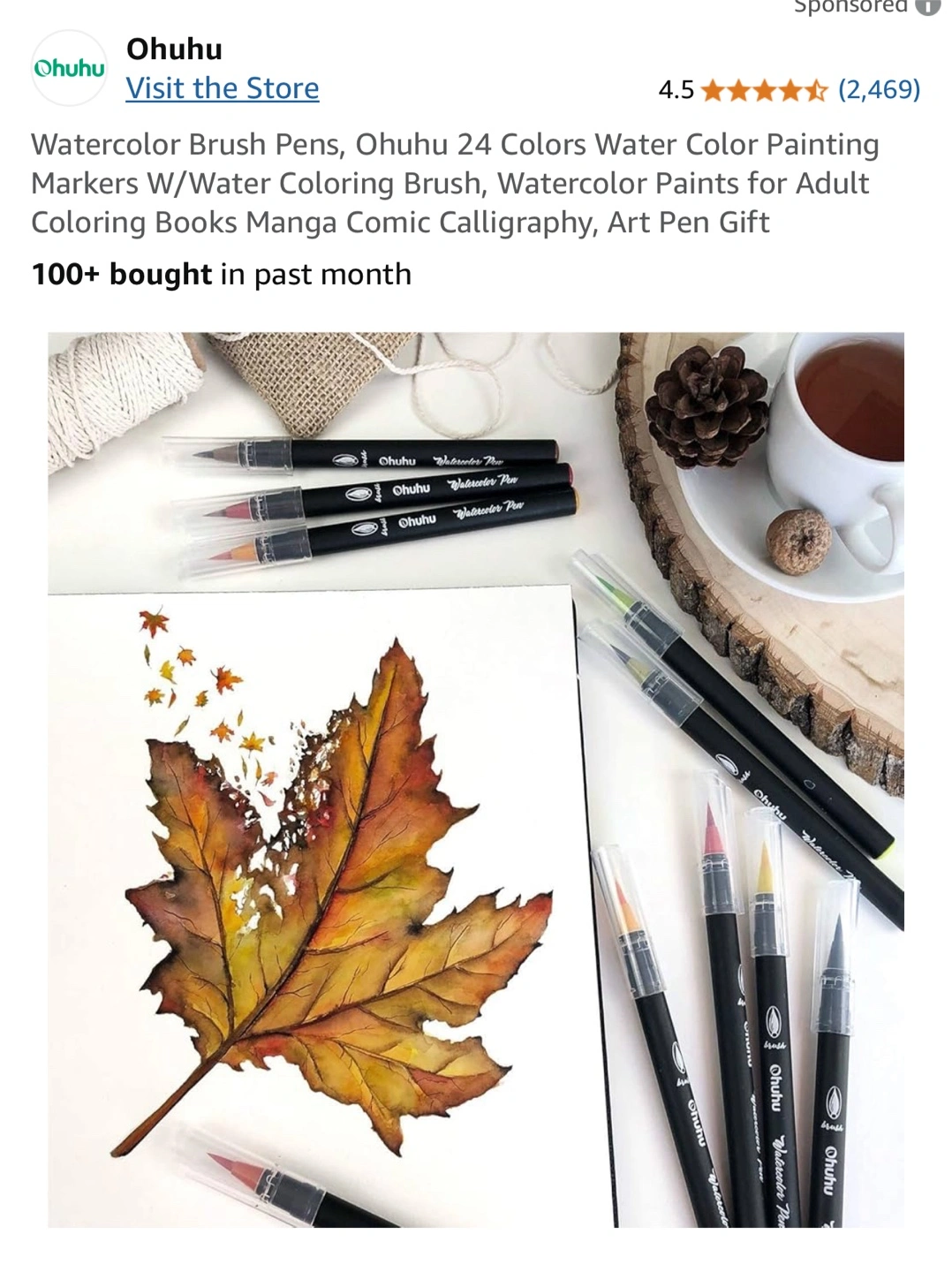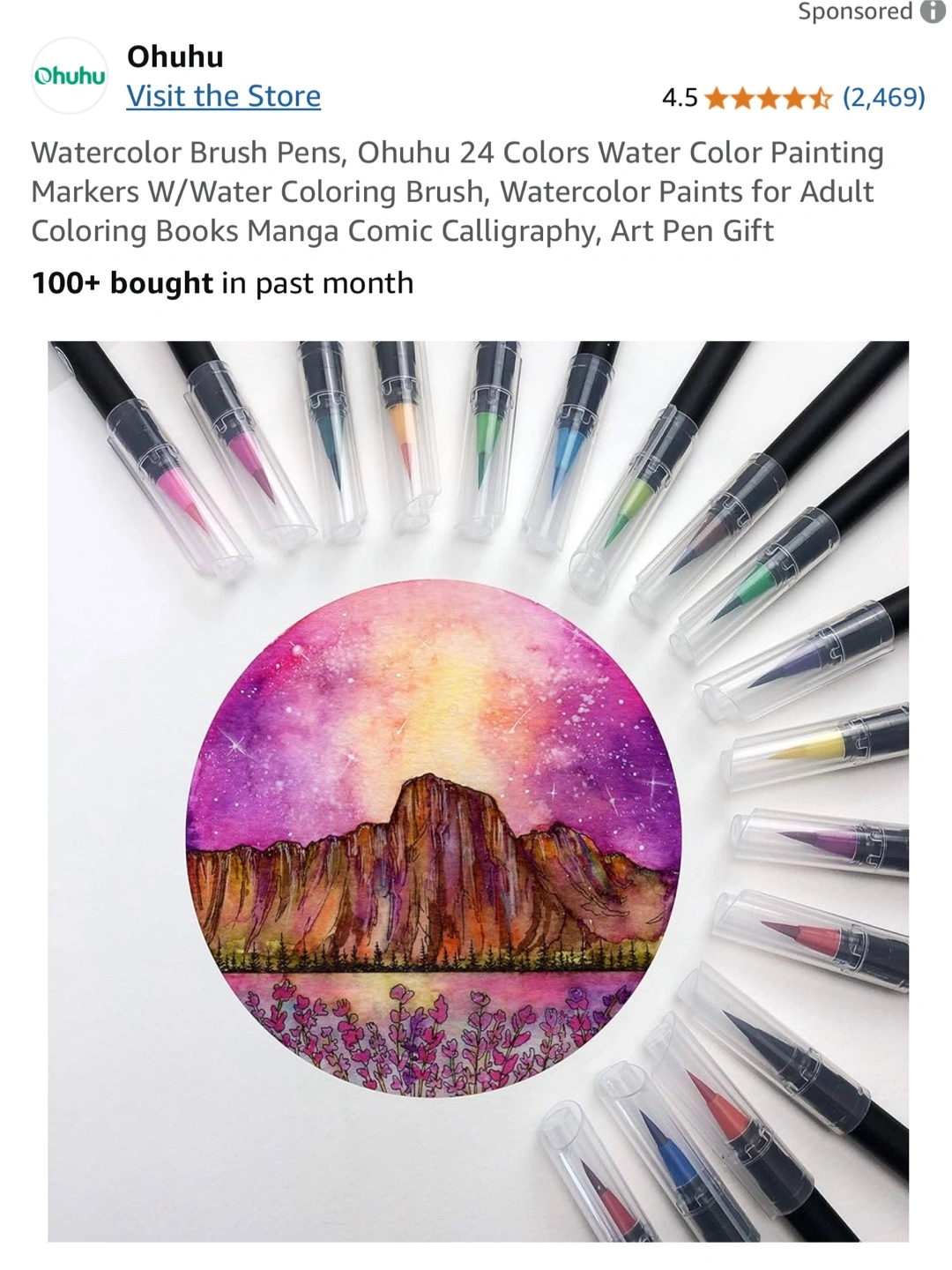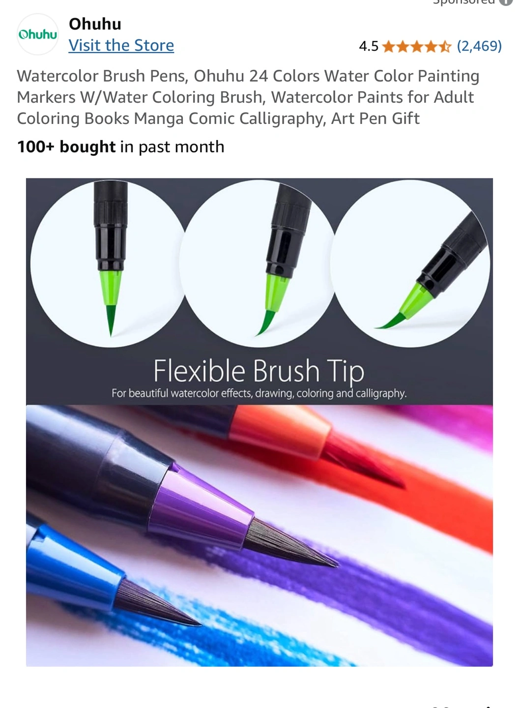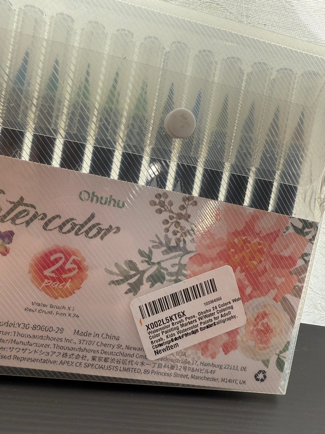 25 vibrant colours. Flexible brush tip. Ideal for watercolour painting, drawing, colouring, and calligraphy. Water-based ink. Great for adult colouring books and manga comic art.