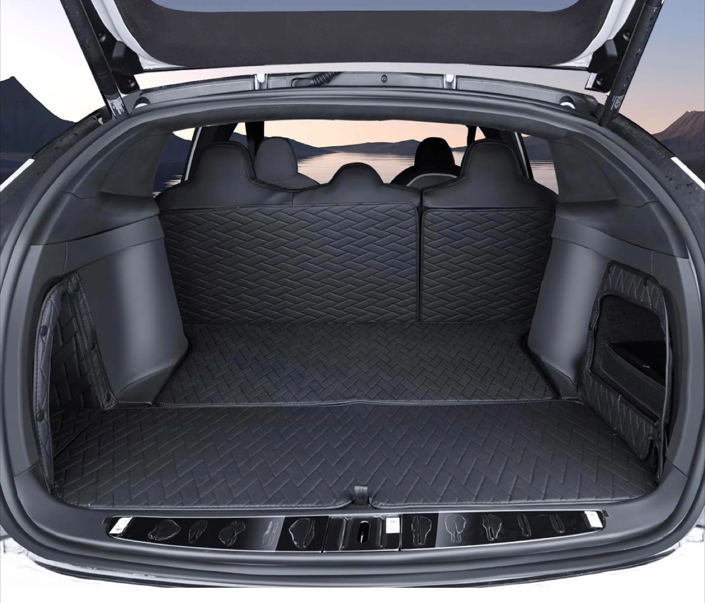 PREMIUM PROTECTION: Durable leather trunk mat provides full coverage of the trunk floor, backrest, and sidewalls to keep your Tesla Model X clean and protected from dirt, debris, spills and more.