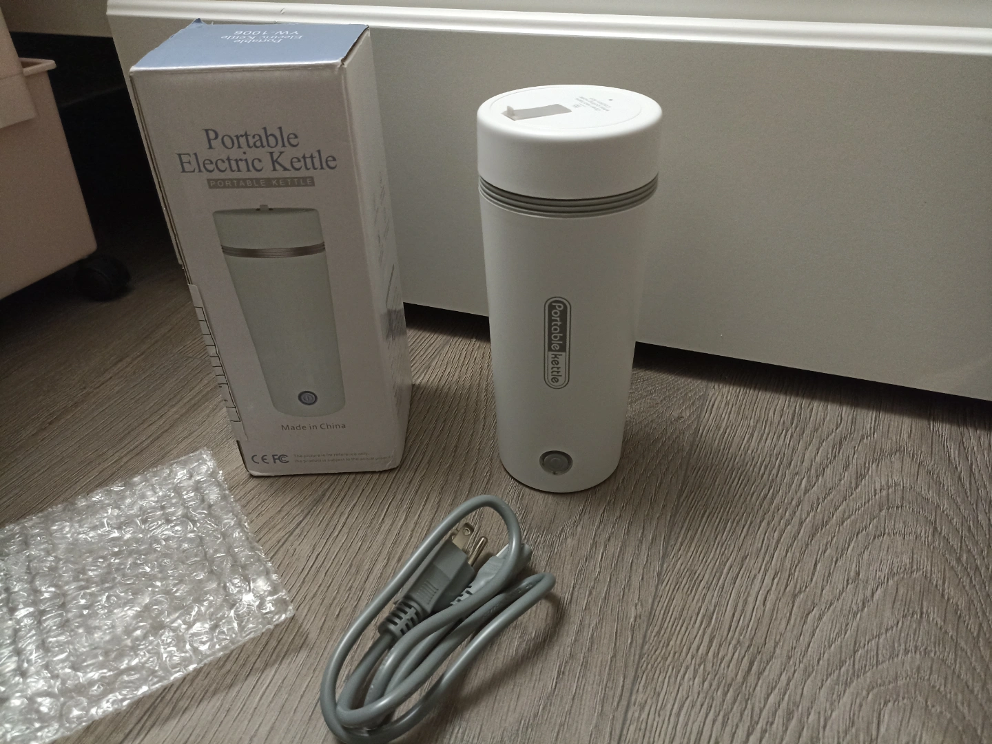 Compact 300W stainless steel electric kettle. Leak-proof & fast boiling. Insulated cup for travel. US plug. Portable kettle, perfect for tea or coffee. Doesn't take up much space. Ideal for travel, lunch bag or suitcase.