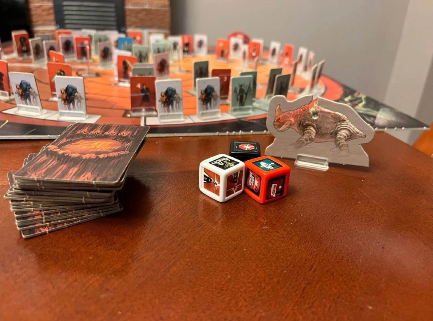 Great condition. Game is complete - includes game board, all cards, pawns and stands, as well as three dice. 8 years and up. 2-5 players. The box has some minor dings/wear.