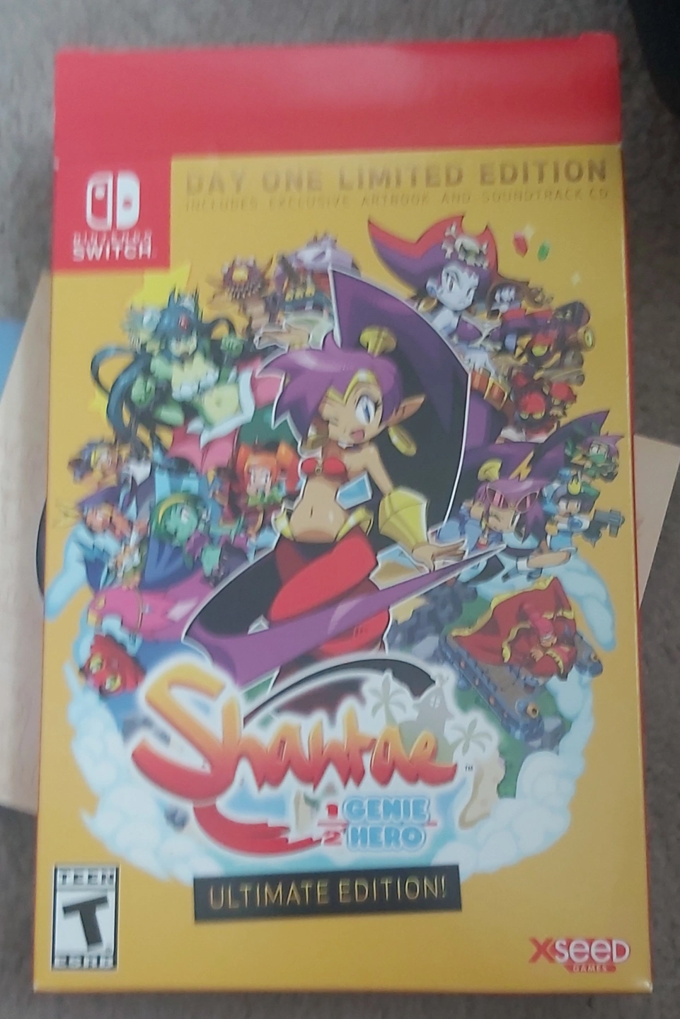 Shantée: Genie Hero Ultimate Edition for Nintendo Switch. Includes game cartridge, soundtrack CD, and artbook. Day one limited edition.