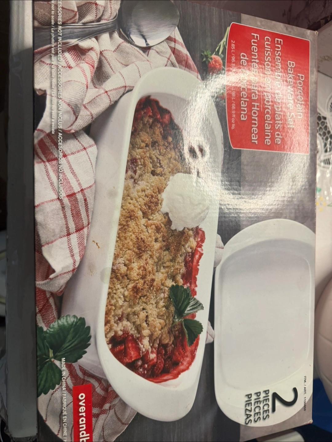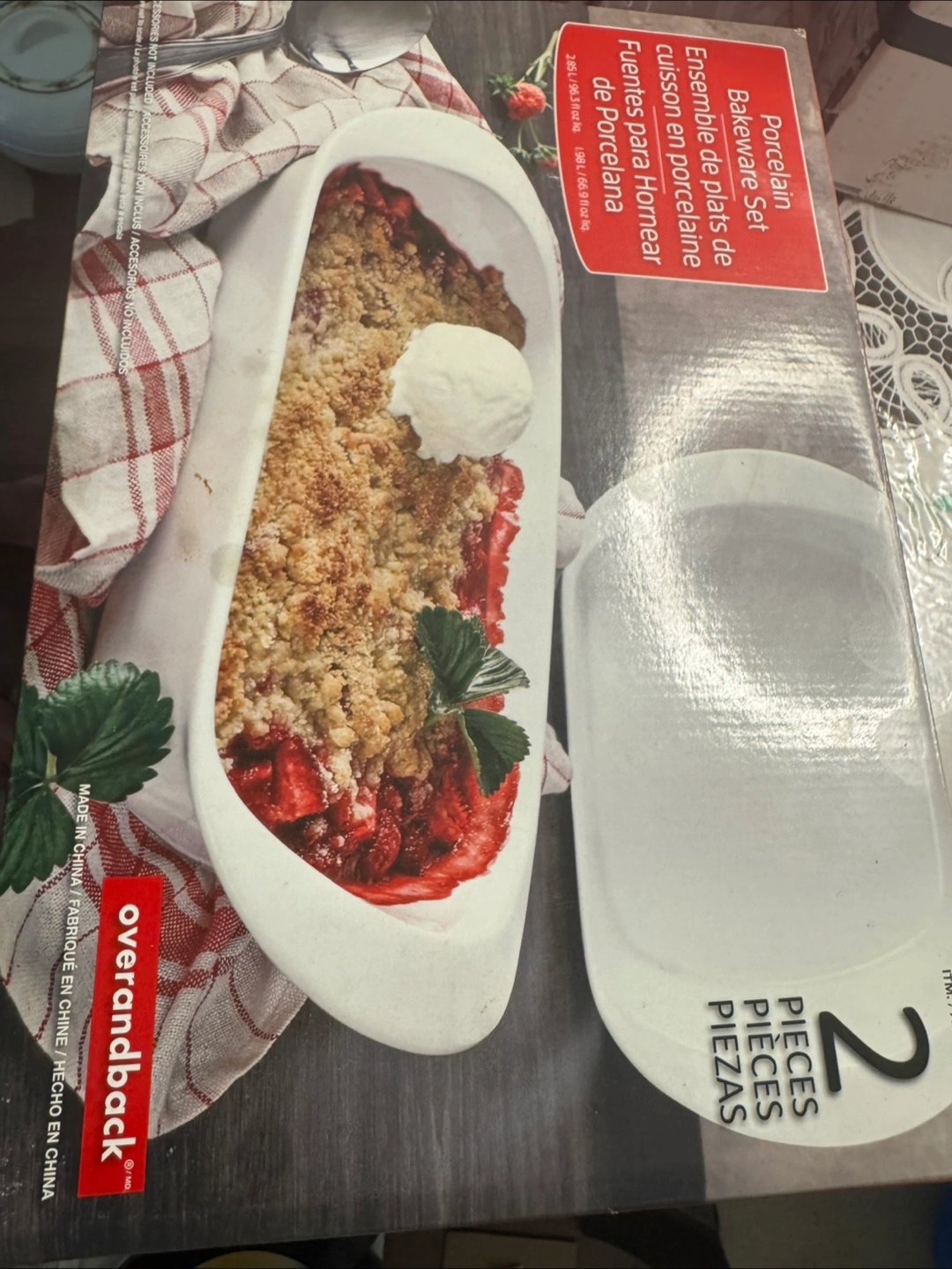 New in box, two-piece porcelain bakeware set. Oval shape. Perfect for casseroles or cobblers.