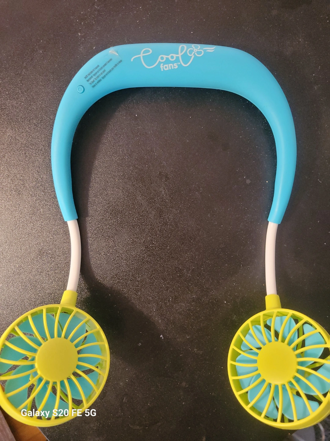 Wearable personal fan. Two fans. Rechargeable battery. Lightweight and convenient.