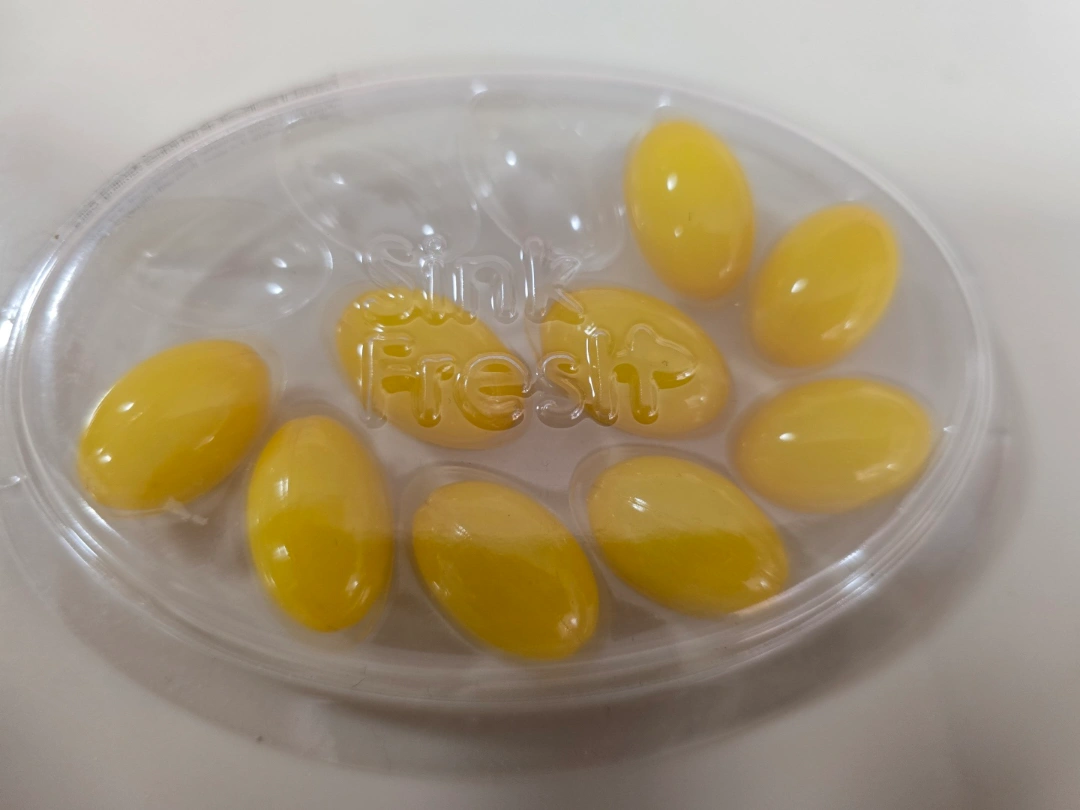 Sink Fresh Lemon scented garbage disposal cleaner. 9 individual lemon-oil capsules. Cleaner and deodorizer.