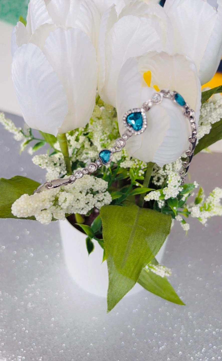 Elegant Teal and Clear Crystal Heart Bracelet
