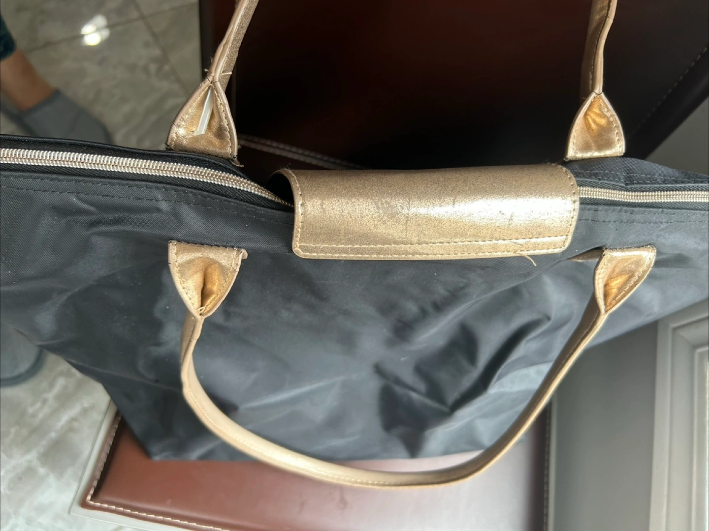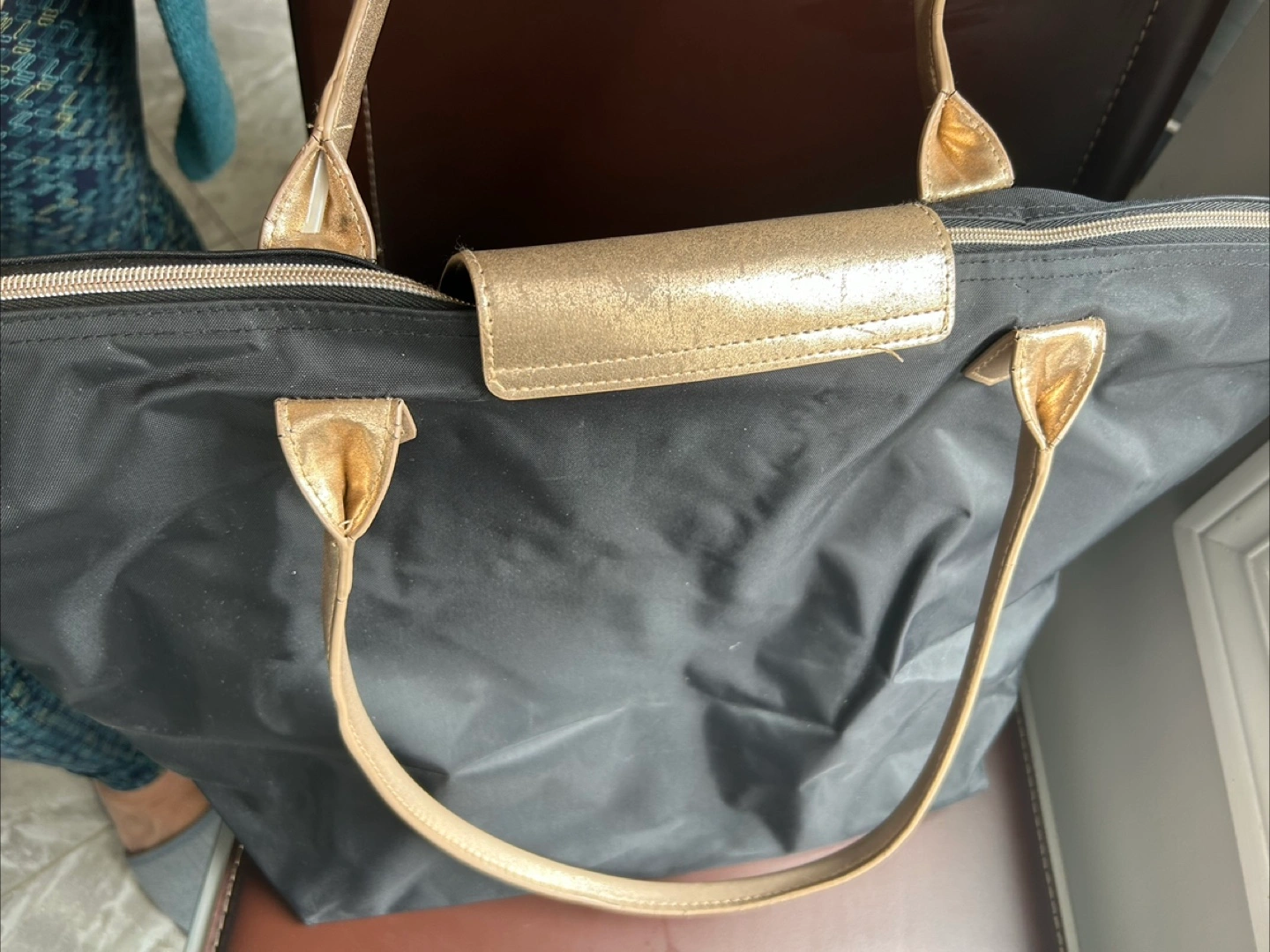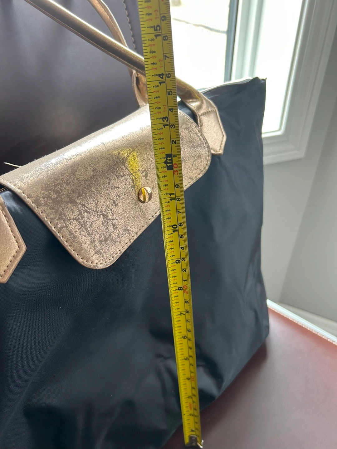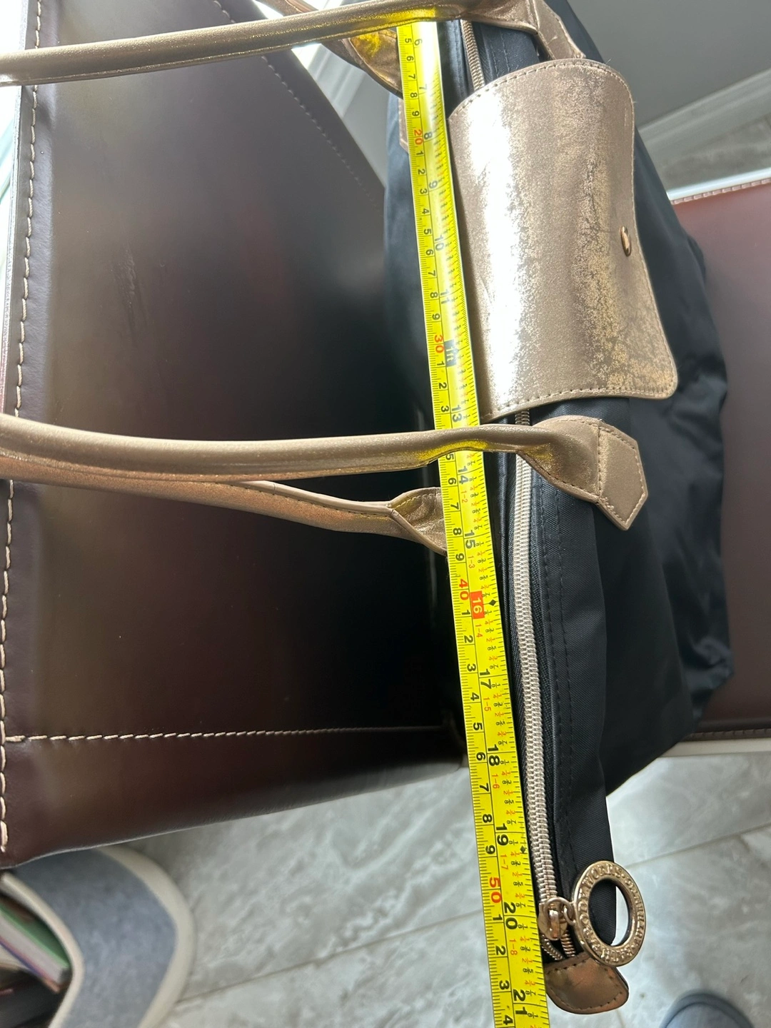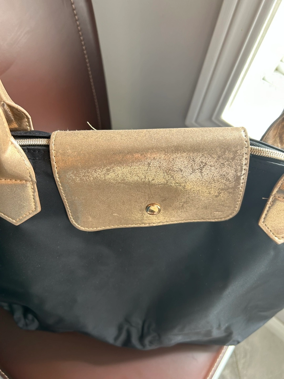 Longchamp Le Pliage Cuir Tote Bag - Black and Gold