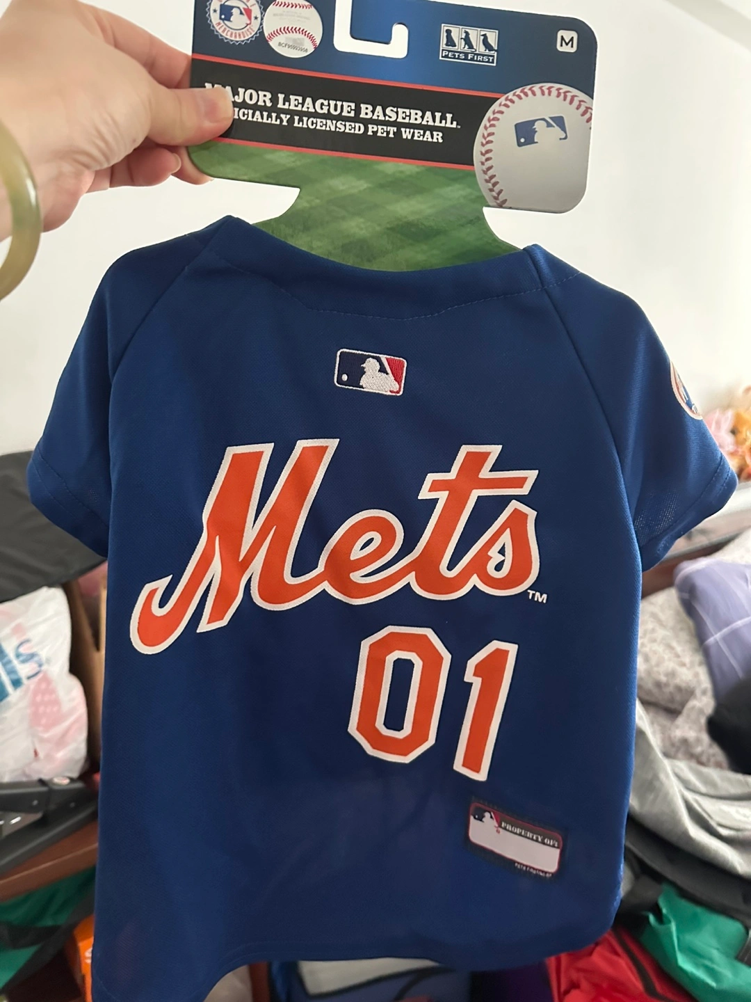 Officially licensed MLB pet jersey. Size Medium. New with tags. Blue with orange lettering. Features the Mets logo and number 01. Brand new with tag.