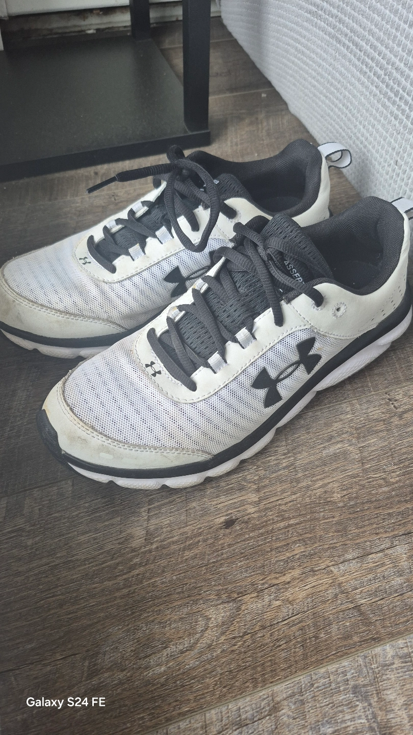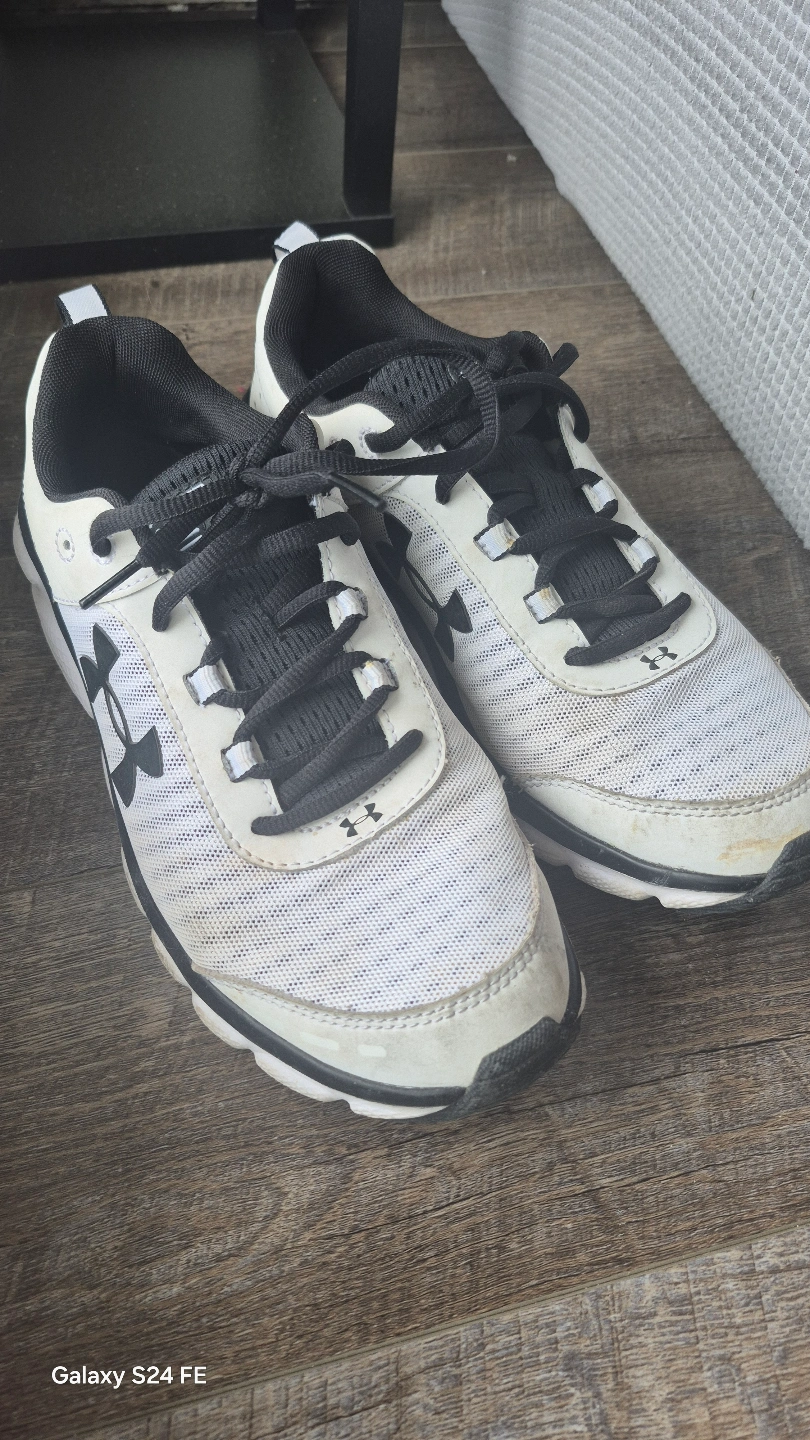 Pre-owned Under Armour running shoes. White and black colour scheme. Size 9.5. Show some wear but usable for everyday use. can deliver for 5 CAD within London.