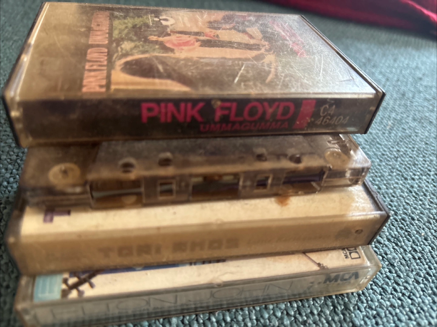 Collection of four used audio cassettes. Pink Floyd, Led Zeppelin, Tori Amos, Elton John. 25c each