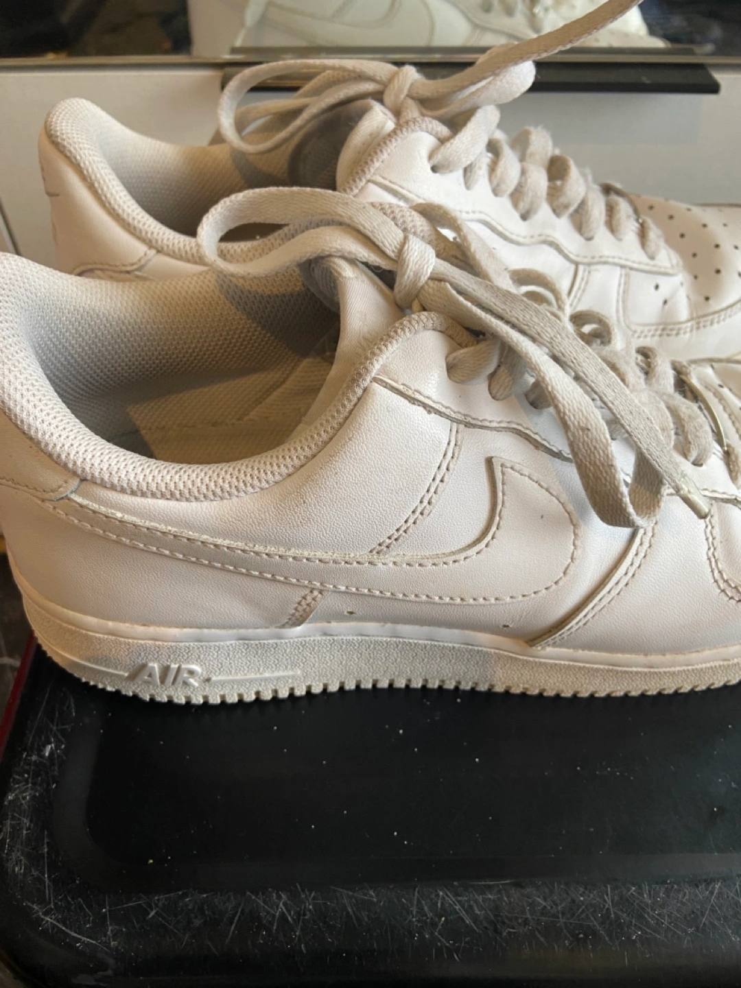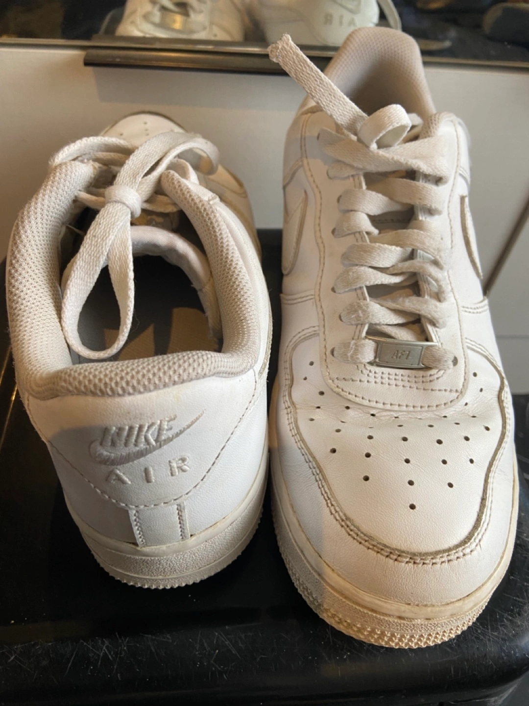 Classic white leather sneakers. Air Force 1 design. Good condition, some minor wear.