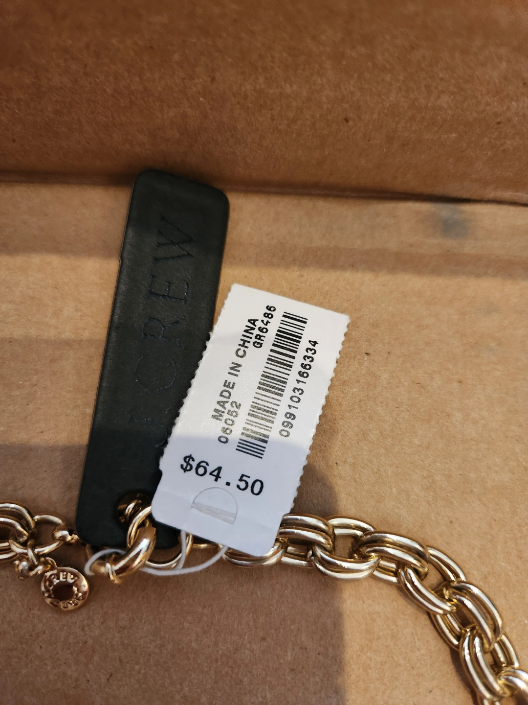 Gorgeous statement necklace. Features a gold chain and a beautiful green and light-green stone design. Comes with original J.Crew dust bag. New with tags.